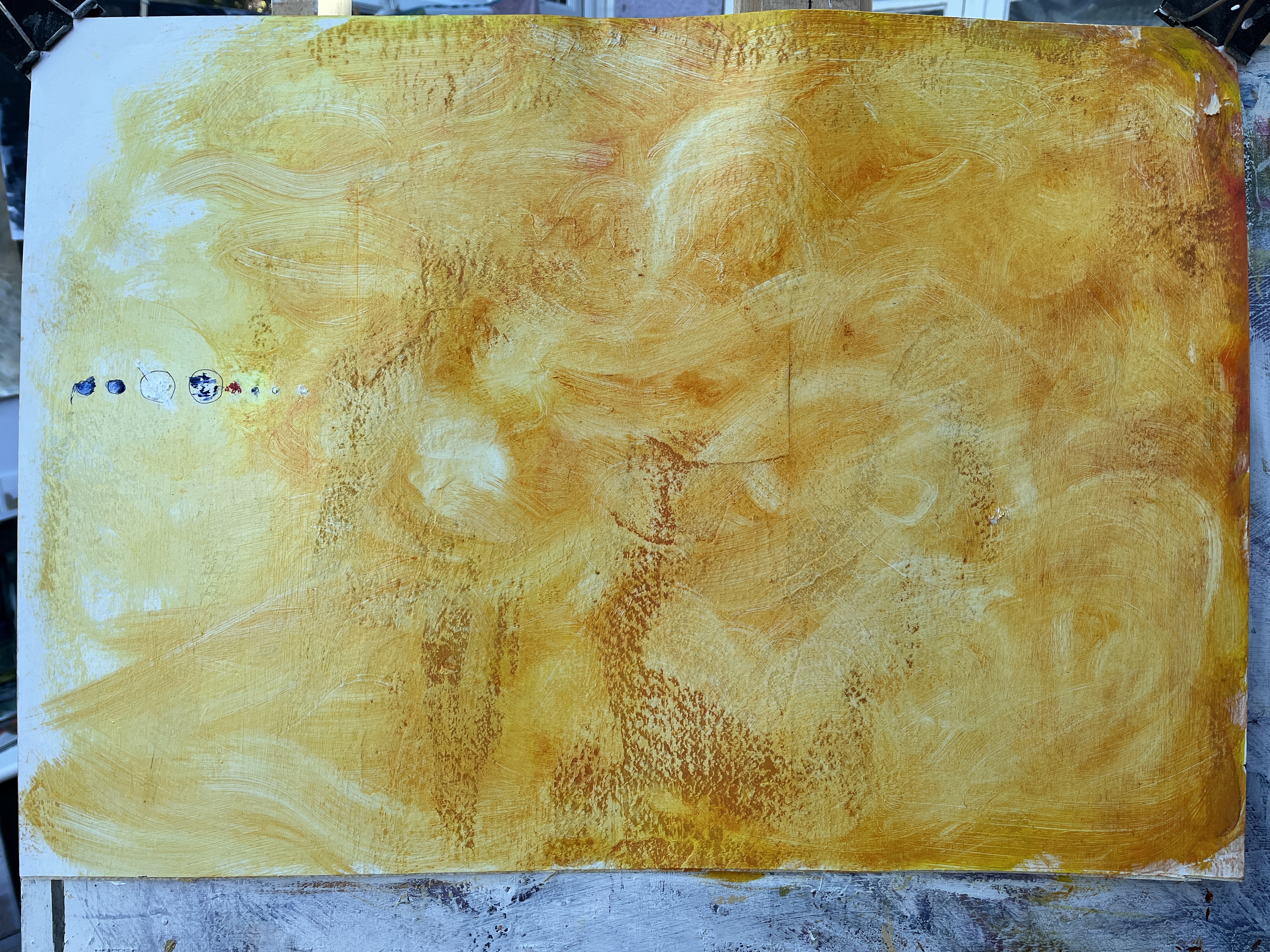 13th April. Rather enjoying the oils despite the slight odour and their inconvenience when it comes to cleaning brushes. I’ve compromised with a jar of neat washing up liquid and another with water. So far that’s going well.