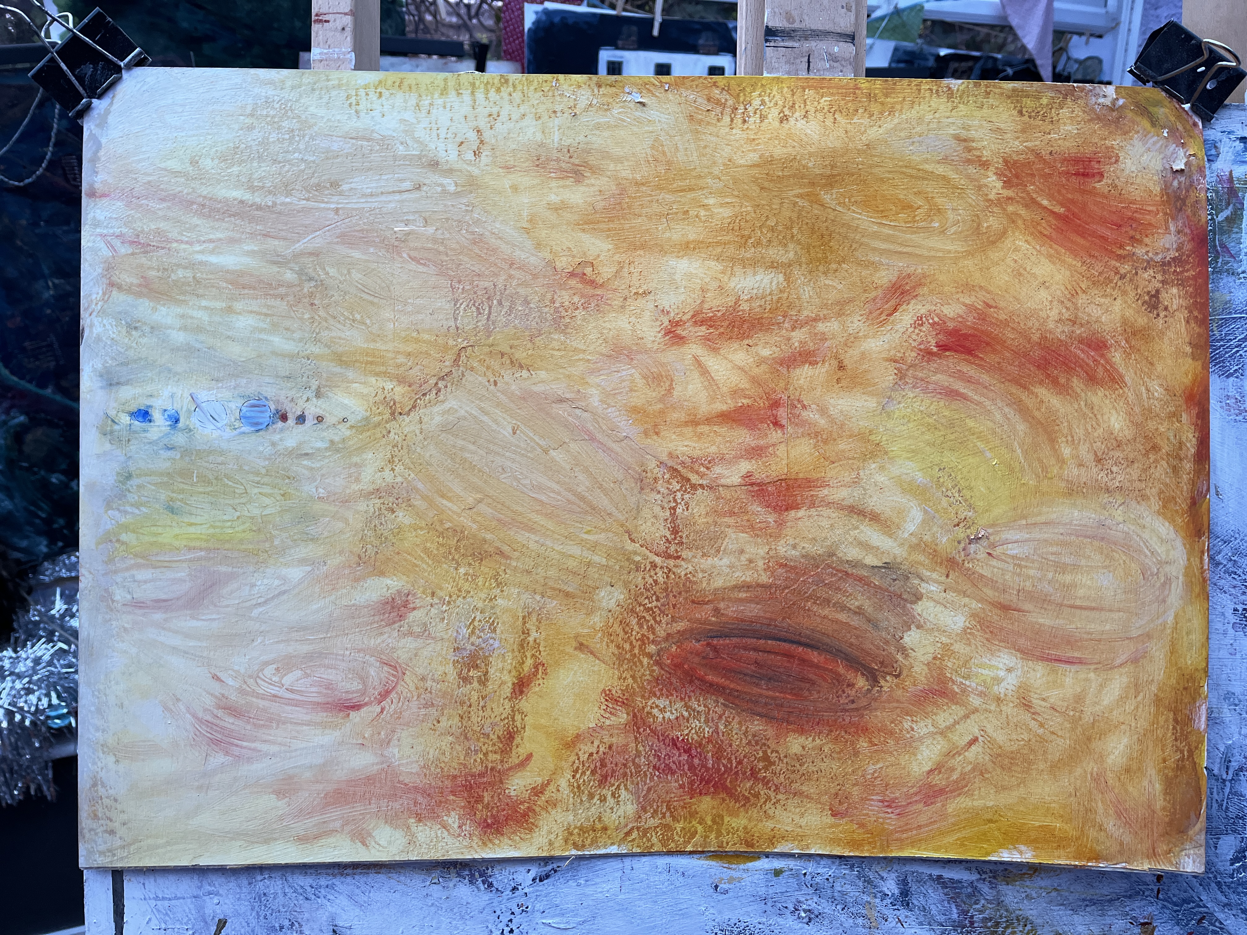 Drawing on Cixin Liu’s reference to van Gogh, string theory, and the reduction of the solar system to two dimensions (Death’s End: Three Body Problem series audio book 2018), this is (hopefully) going to be an exploration of Van Gogh’s approach to a cosmology he could never have seen and, for the latter part, doesn’t actually exist. It’s also in oils which I found in the bottom drawer of a stack. Bit of a first for me.