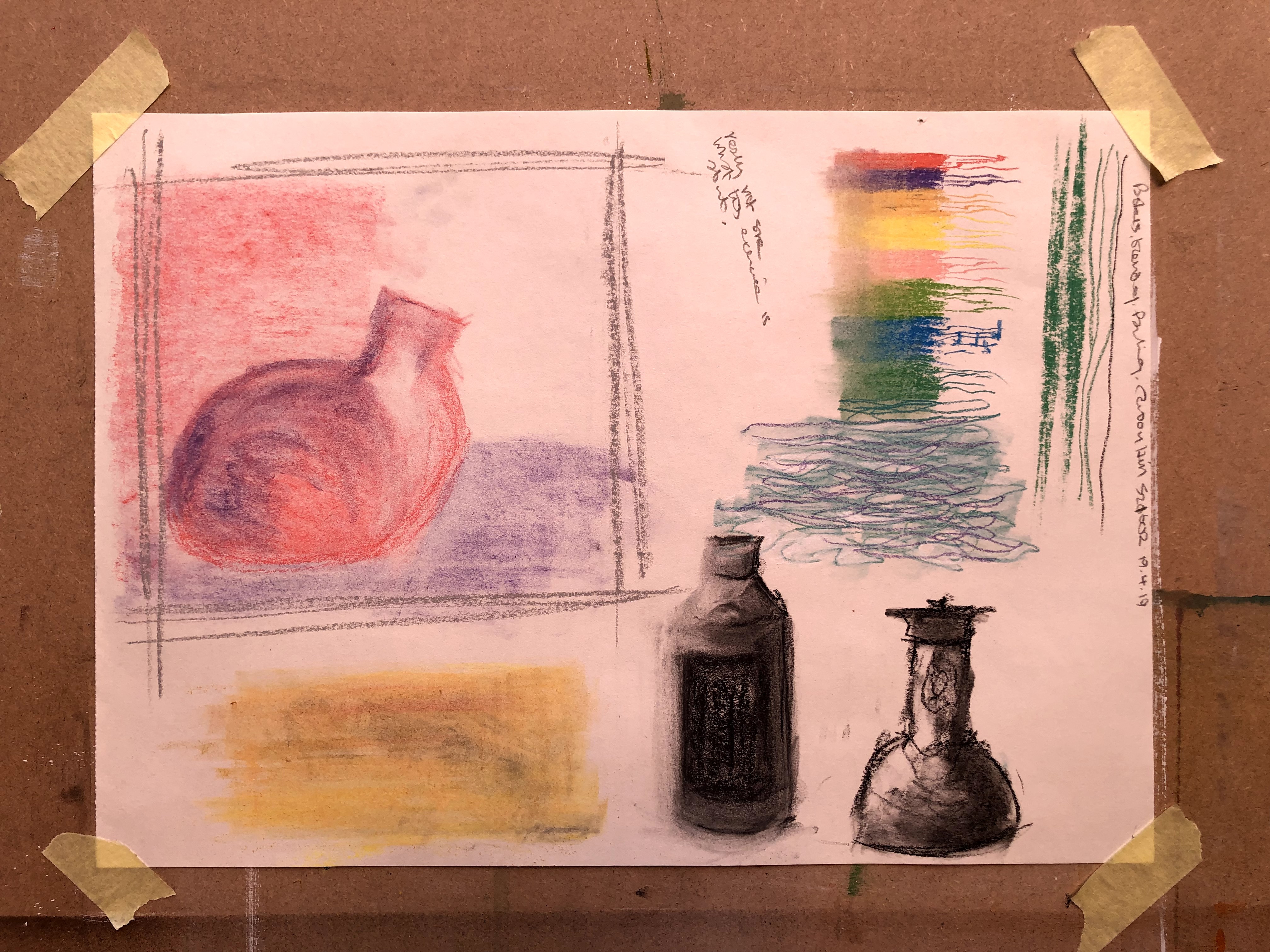 I think this task is about using pastels much as I might use paint but I’m really not sure what’s expected. I have both oil and regular pastel crayons so I started with the oils.