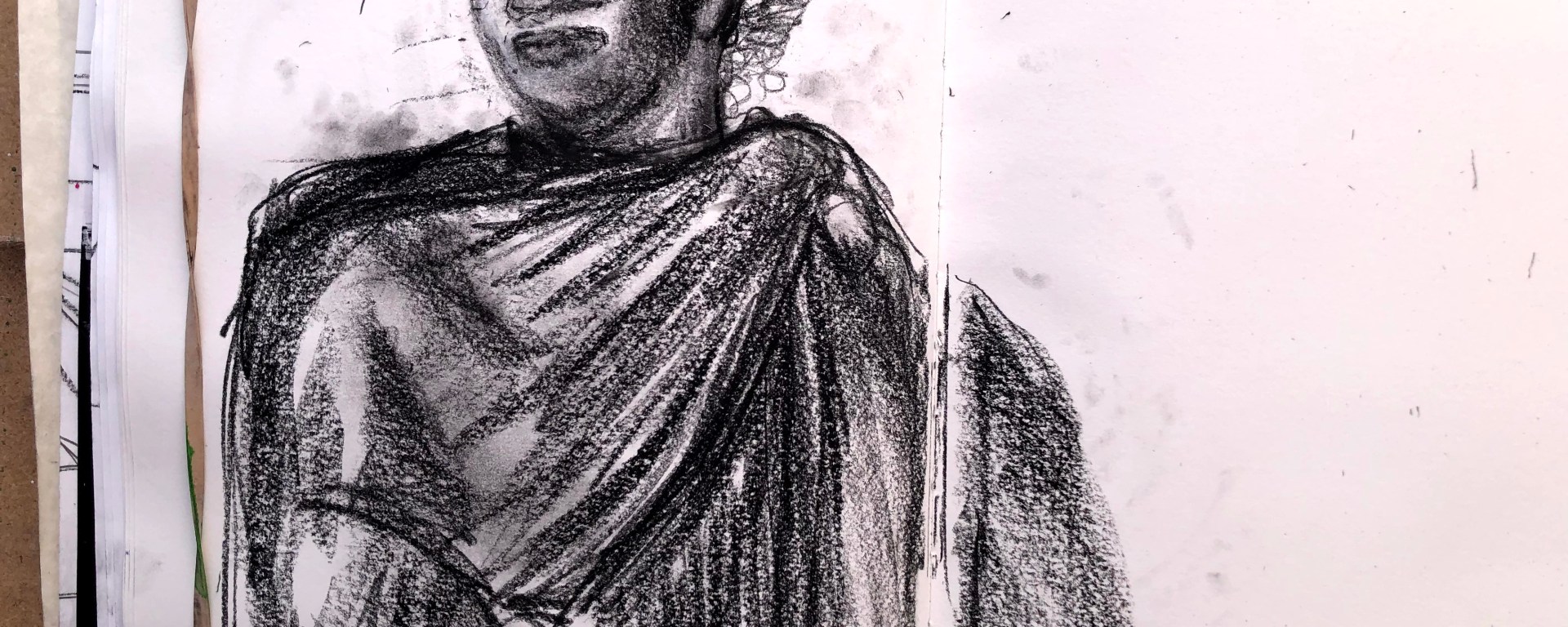 This is going to be a tricky section to navigate given I’m not prepared to draw nude models and there are few available clothed bodies hereabouts likely to sit still for very long. For now though, it’s draped fabric and I have a handy towel.