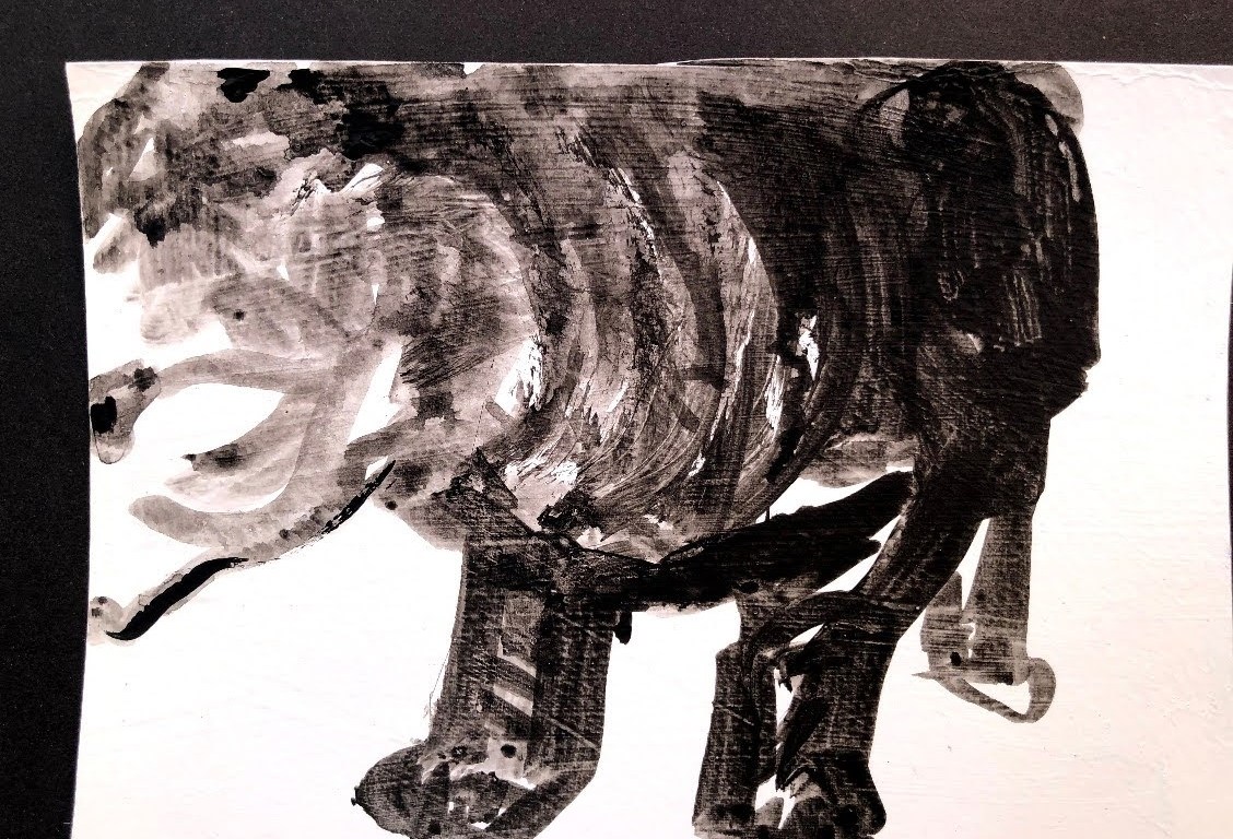 What stood out for me, beyond finding this to be possible at all for me, was how some media still leave marks even when they’re essentially the same colour and even the same type. Ink has a brown-ish sheen to it, Chinese White has a greenish cast on white acrylic, impasto has the potential for more marks because of its shadows and texture – dragging a piece of soft pastel over it for instance, and watercolour on acrylic is capable of some very fluid motion.