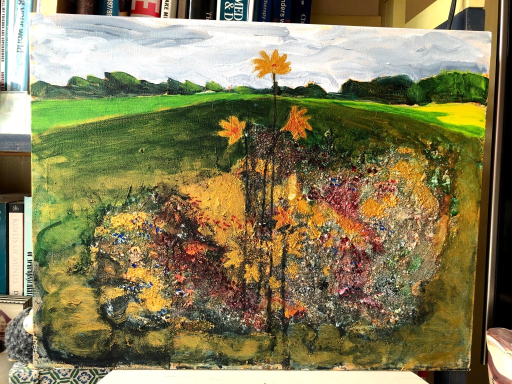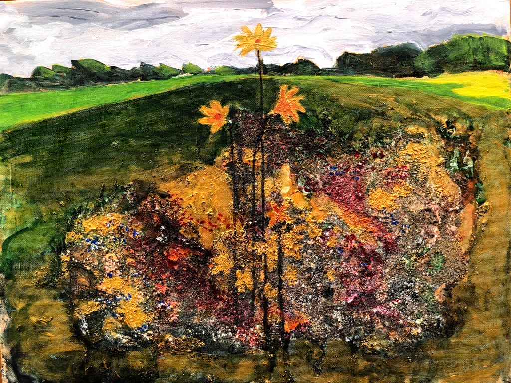 Tin Pots Hill. Acrylics on A1 duck cotton.