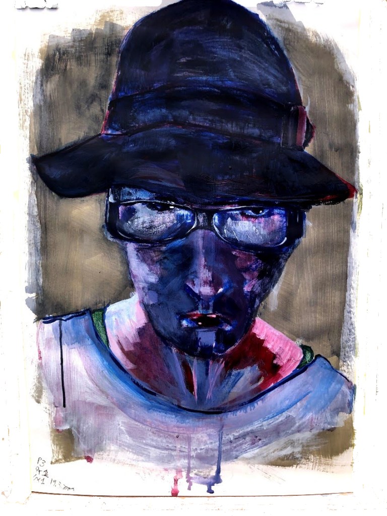 Angry COVID Face. Acrylics on A2 paper