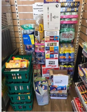 And this. Every week our village fills up this corner of the newsagents with donations to the food bank. These are collections that bring up feelings of both pride and shame – pride at the continuous response to the needs of others, and shame that we should need to do it at all.