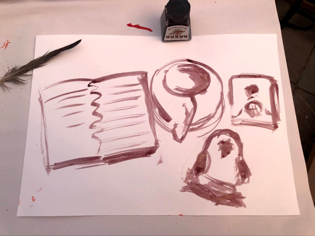 This exercise proved much easier to accomplish with more meaningful and less personal subject matter. It had to be inventive about media though, as most of the ones suggested either give off noxious fumes or are food stuffs. Instead, I’ve used PVA glue, wax, plain water, and seed that can be washed out of the paper or left in a seed tray to see if anything grows.