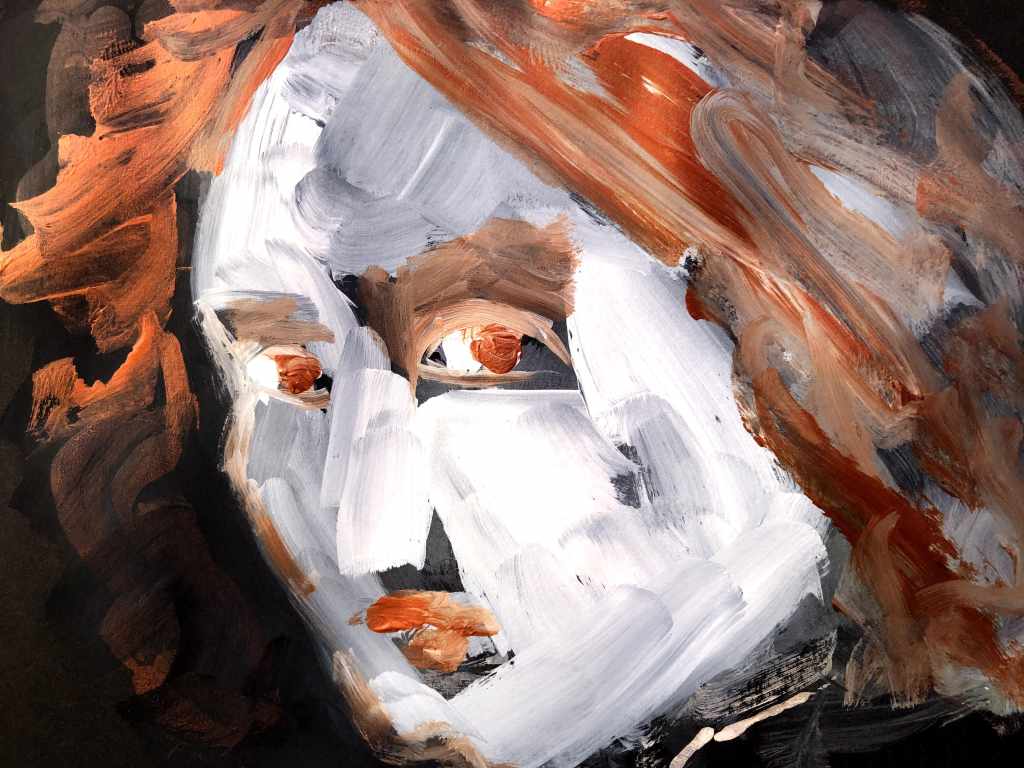 But if we’re looking for over-worked obliteration, here it is! I think I threw everything at this, from paint on the end of a pencil to stylus, pebble, and impasto. There are some marks that are interesting in their own right but as an image it’s an over-painted head with misaligned eyes and its hair still in rollers.