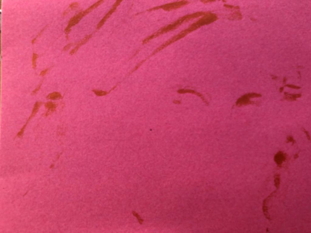 First mono – bronze acrylic on pink sugar paper. I like the minimalism of this, the expanse of negative space. Ironically, it’s the thing I destroy when I begin ‘working’ on things.