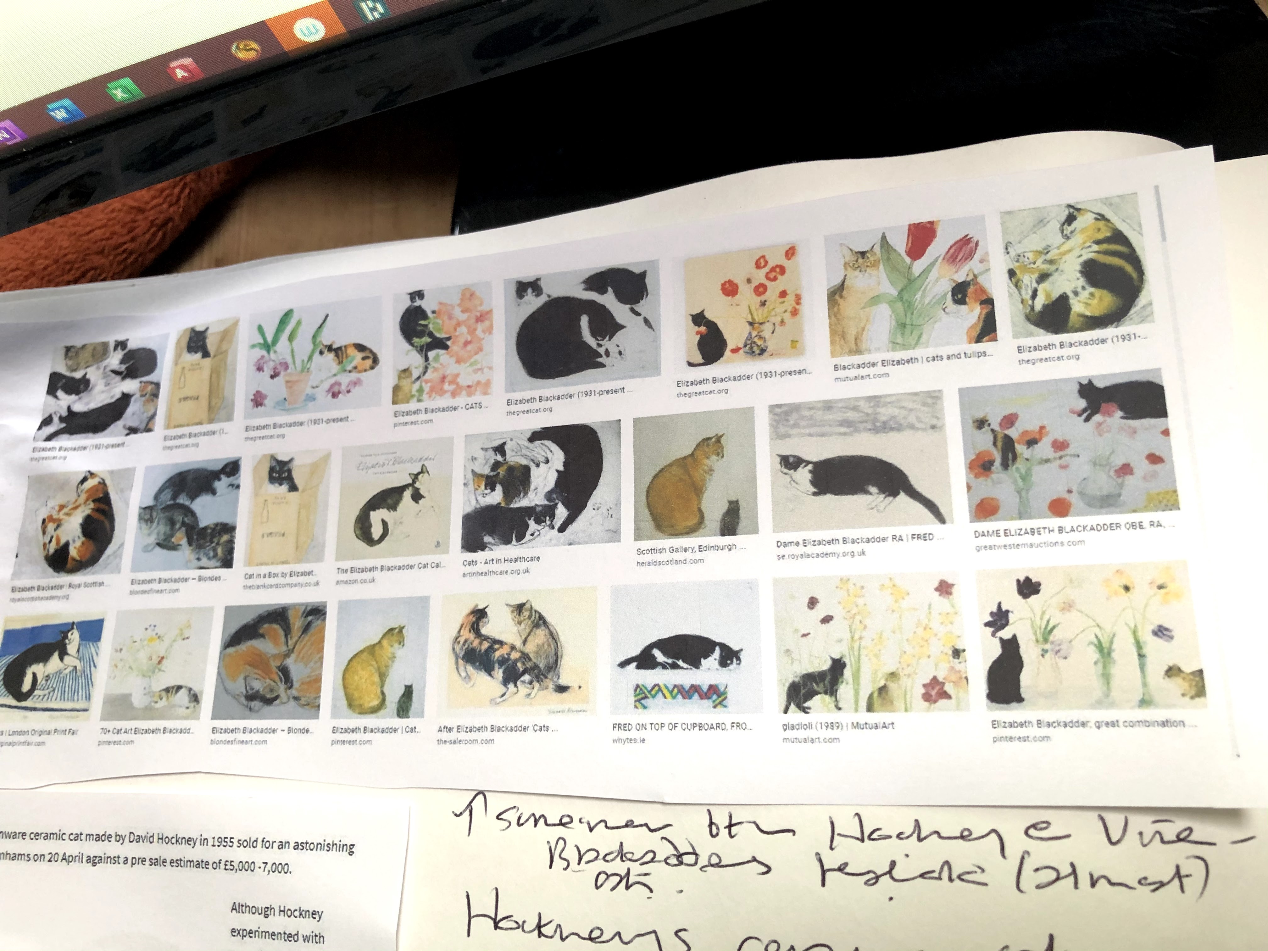 Some of the artists recommended though resonate with me. David Hockney’s cats for instance, especially the startled-looking earthenware one from 1955, are pure cat which seems testament to his ‘eyeballing’ skills, given his preference for dogs.