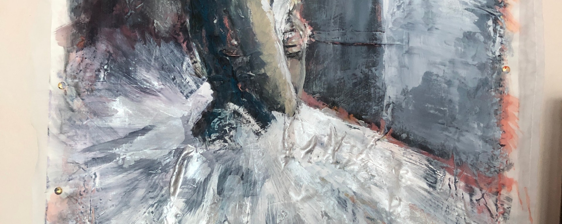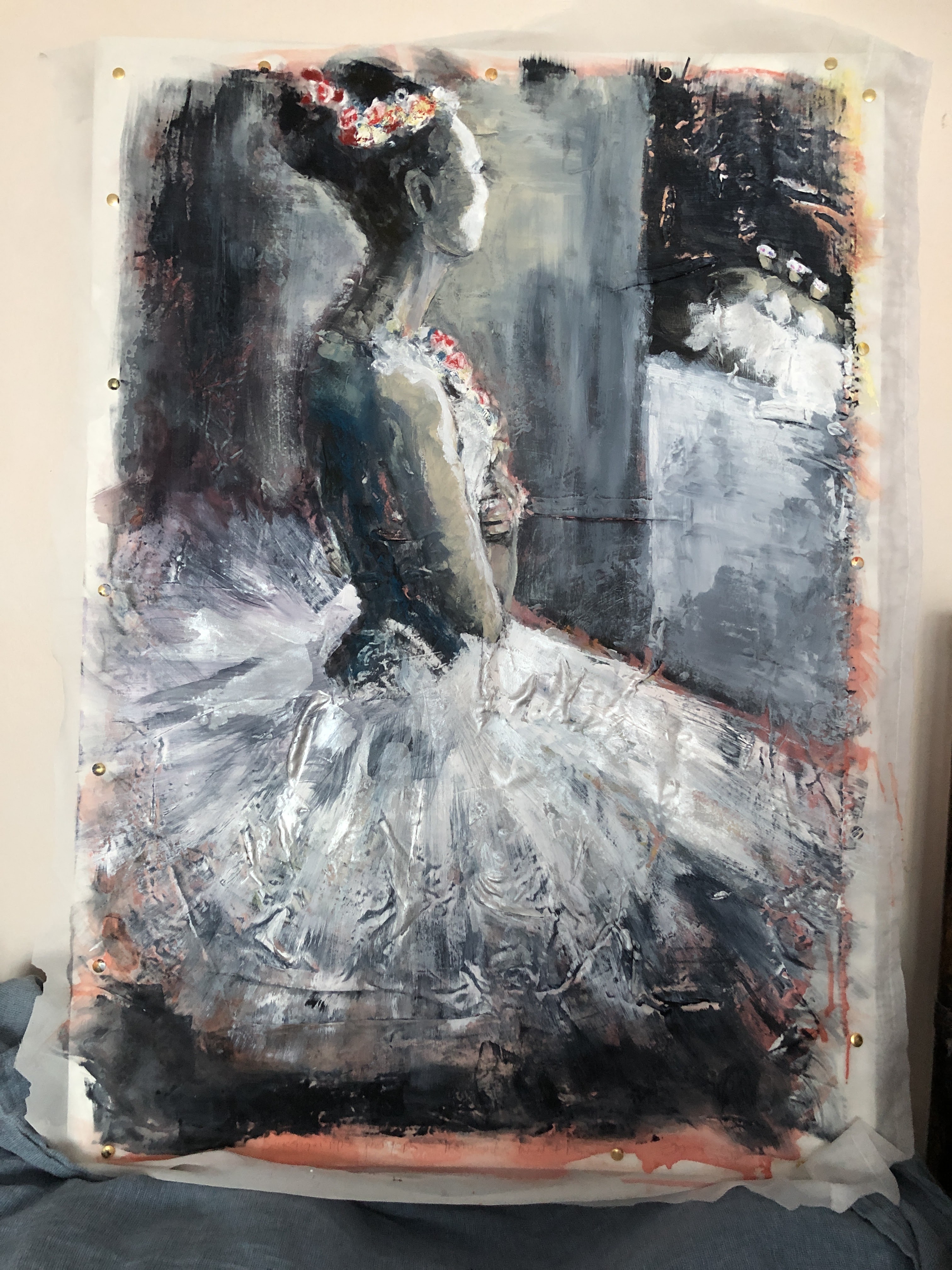 art course, painting, video ‘Backstage’ Painting after a photograph by Gerard Ufera, with permission. Acrylics on A1 cartridge, net fabric, and gloss varnish. Made in Filmora10. Share this: Click to share on X (Opens in new window) X Click to share on Facebook (Opens in new window) Facebook Click to share on Pinterest (Opens in new window) Pinterest Like Loading... Related