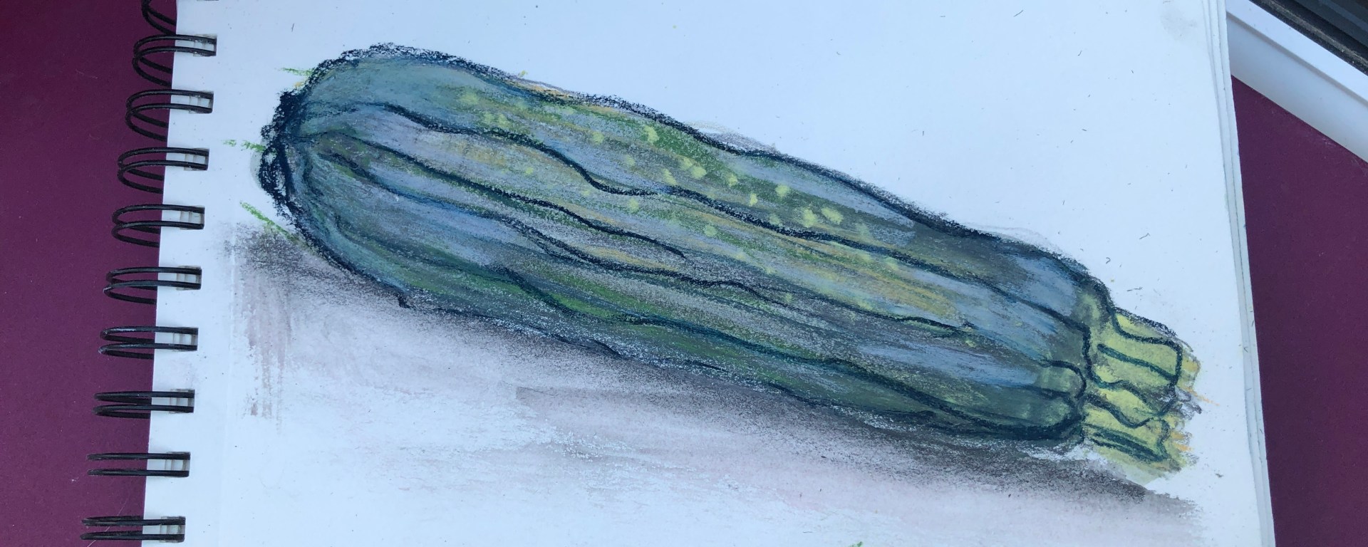 In the spirit of Mastermind, I’ve started so I’ll finish. Today it’s a courgette which followed two disastrous apples. Let’s be kind and call it stylised.