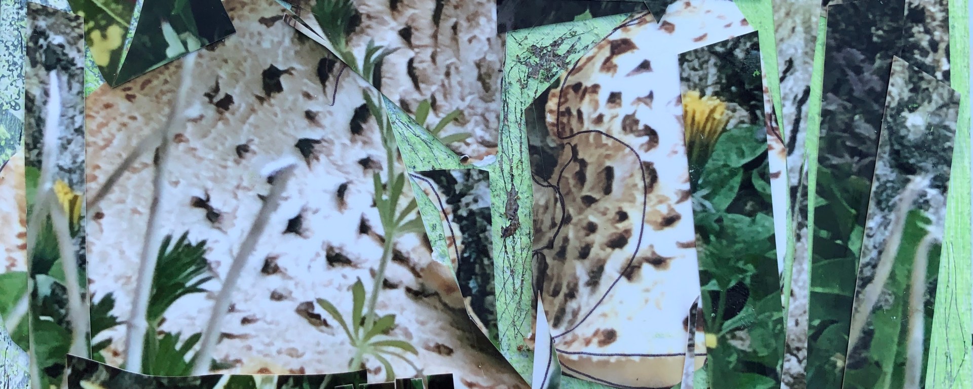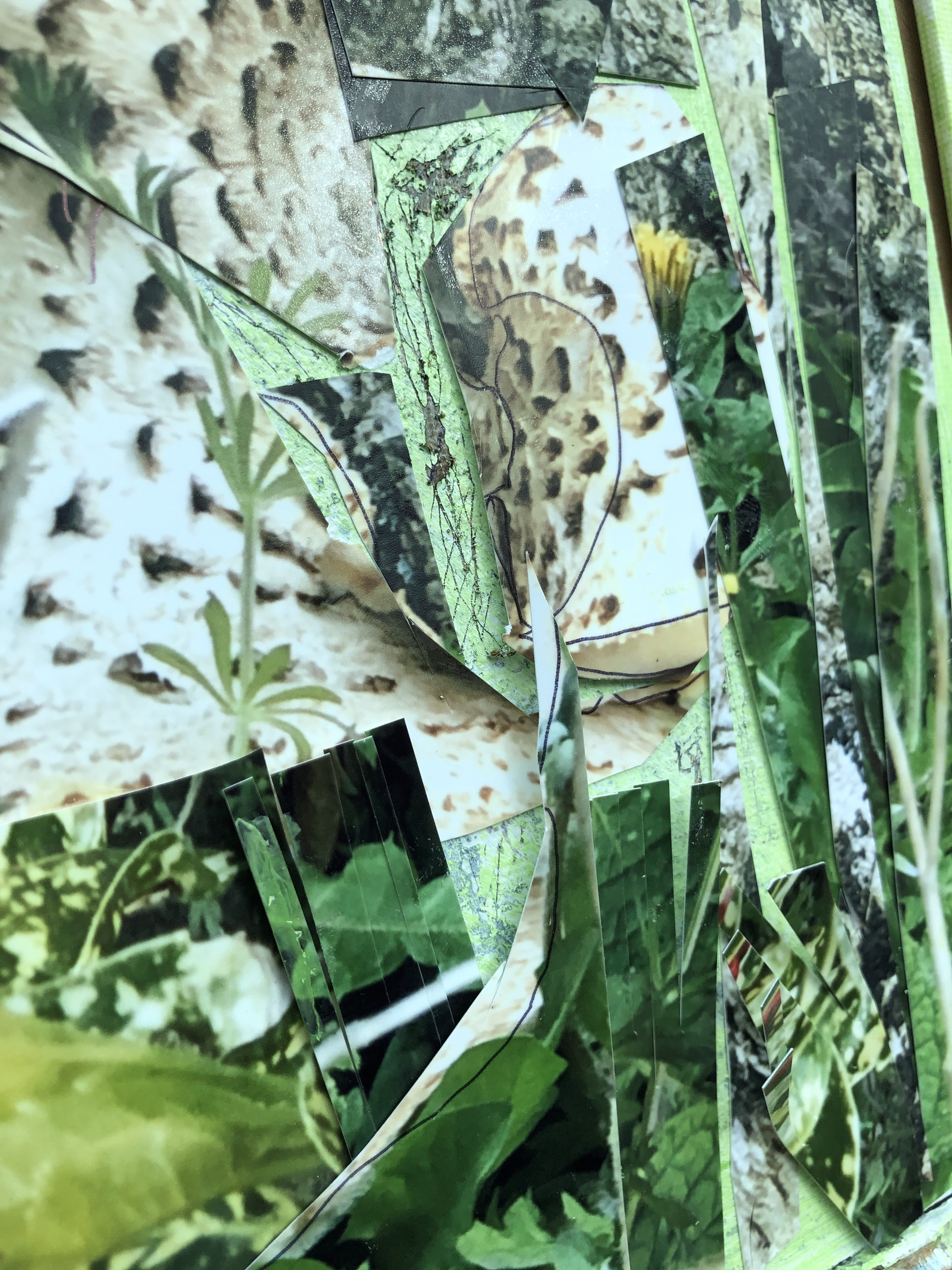 You can see the tracery in between the collaged elements. These are representative of the mycelium that is where the fungus actually lives – miles and miles of it underneath the bit we see, the fruiting body.