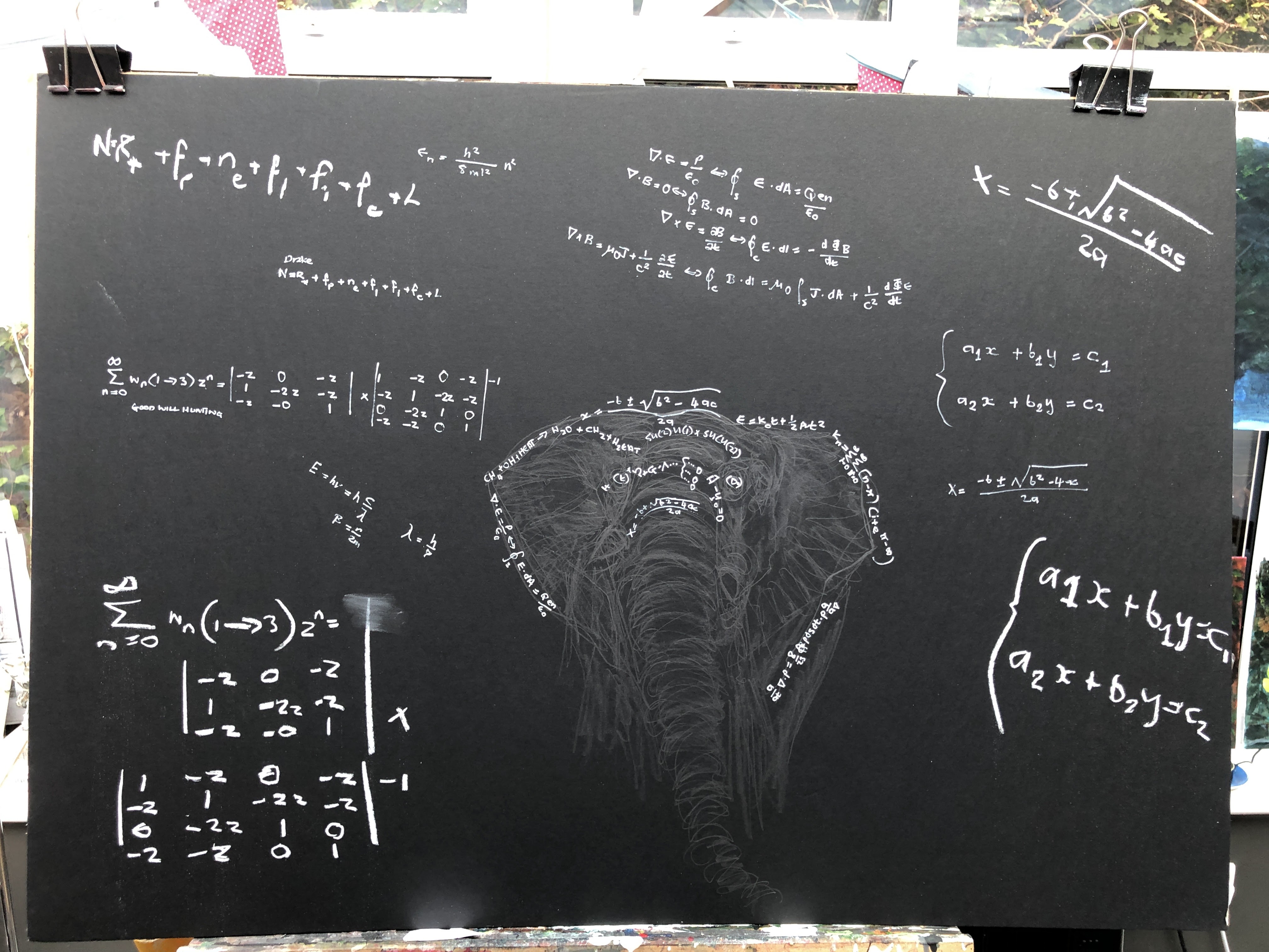 The board is like the ones we had in school and which was covered in equations chalked up by our maths teacher. Those equations terrified me but I don’t think any of us ever dared follow his advice to ‘draw an elephant’. Finally, its time has come: