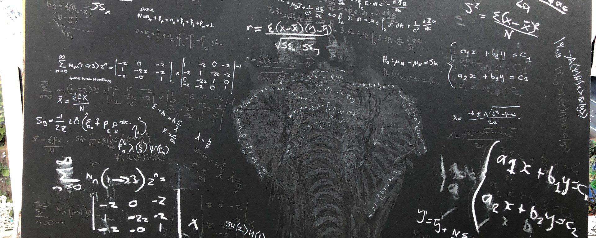 The board is like the ones we had in school and which was covered in equations chalked up by our maths teacher. Those equations terrified me but I don’t think any of us ever dared follow his advice to ‘draw an elephant’. Finally, its time has come:
