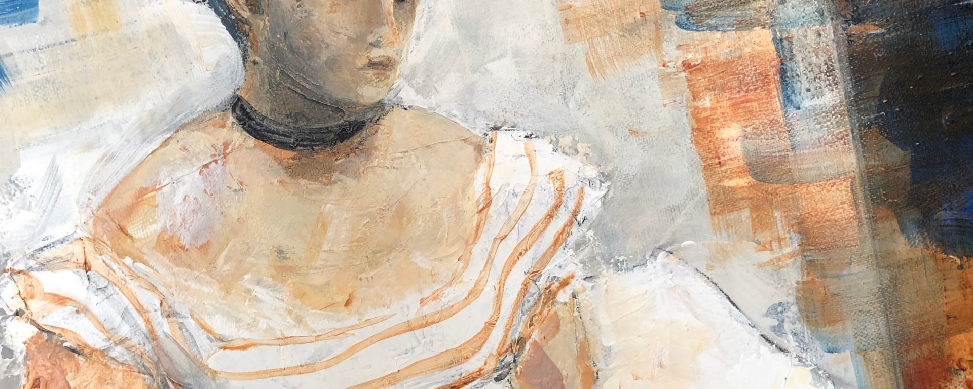 There’s a long tradition of men painting naked women, sometimes in the company of clothed men. Degas didn’t do that so much but he did hang out backstage around young girls – the Petit Rats as they were called – and painted very many of them. This painting is based on (‘after’, as they say) his ‘Woman on a Balcony’. She is quite haughty and may have been a person of importance, unlikely to strip off for an artist. My young woman though is giving the artist the side-eye, I doubt he’d risk any unpainterly moves.
