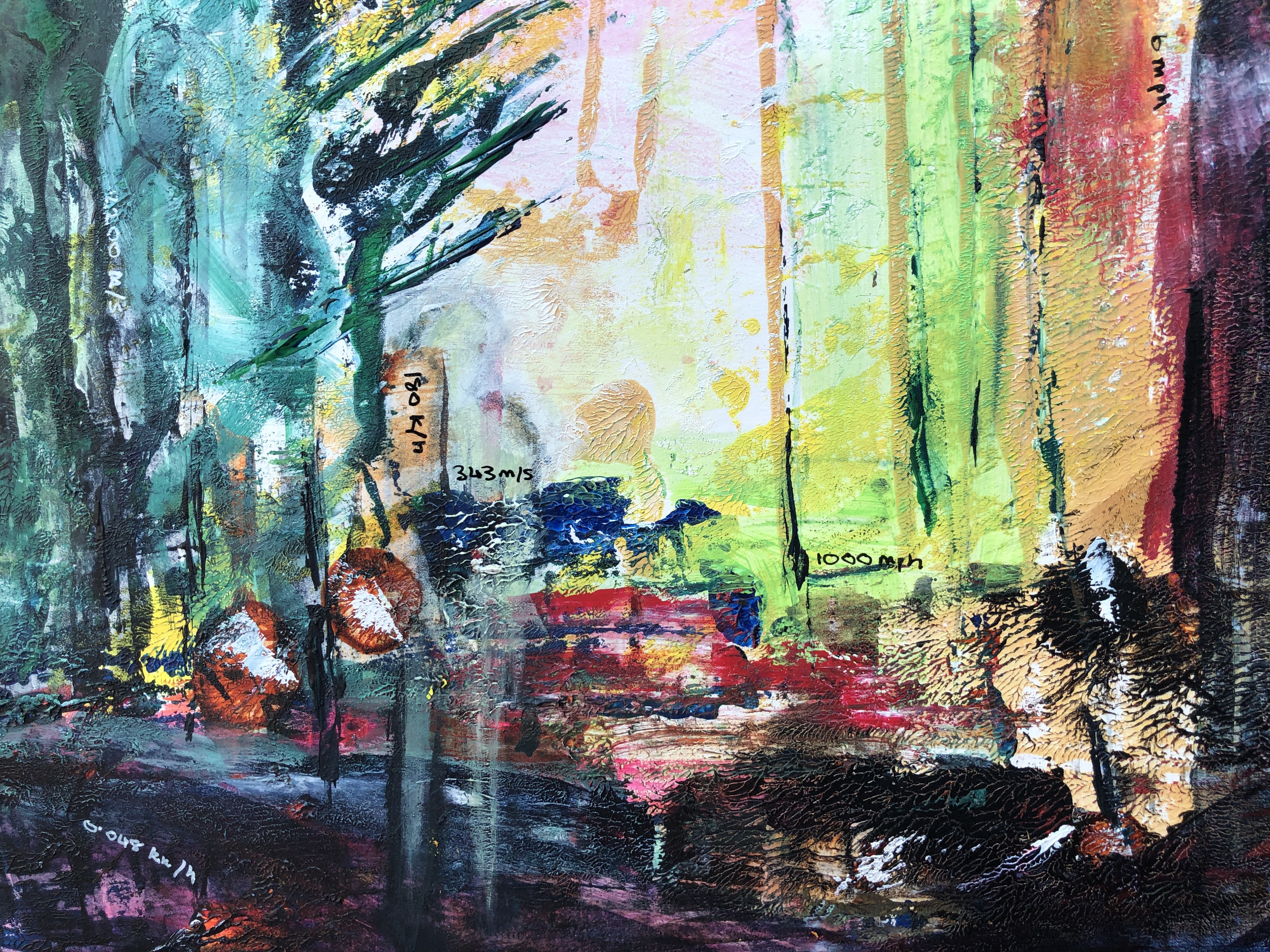 The editor asked me today for the title of my piece and as I’d been going by the title of the poem, I didn’t have one. Then I remembered putting all those numbers into it so I remade the video with those as captions and retitled my painting(s) The Speed of Things.