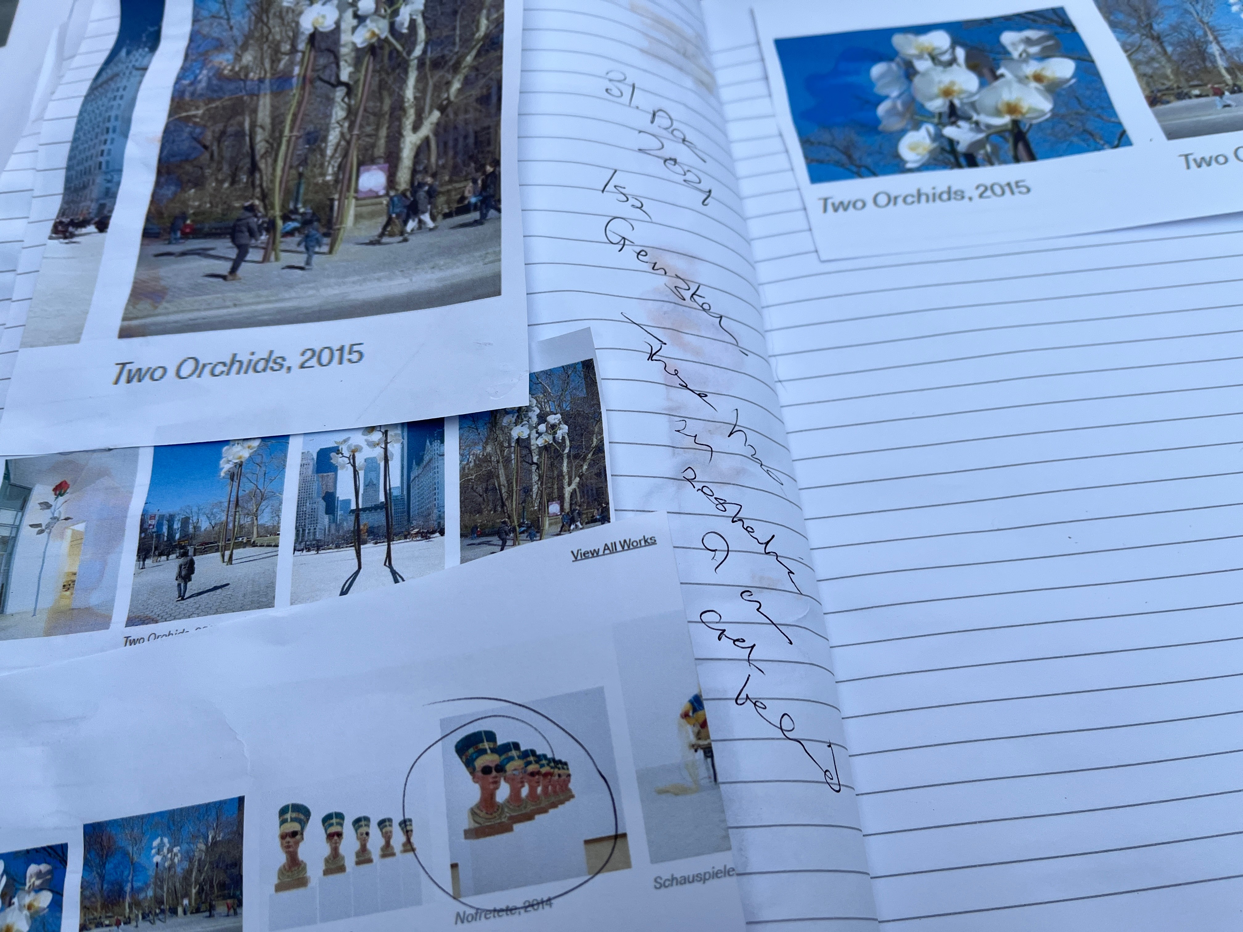 Isa Genzken (1948-) presents a different aesthetic entirely, something much more delicate even when the scale is huge. A sculptor and installationist, she is reported to have become interested latterly in bricolage, a term I had to look up and which means “the construction or creation of a work from a diverse range of things that happen to be available, or a work constructed using mixed media.”, according to wikipedia.