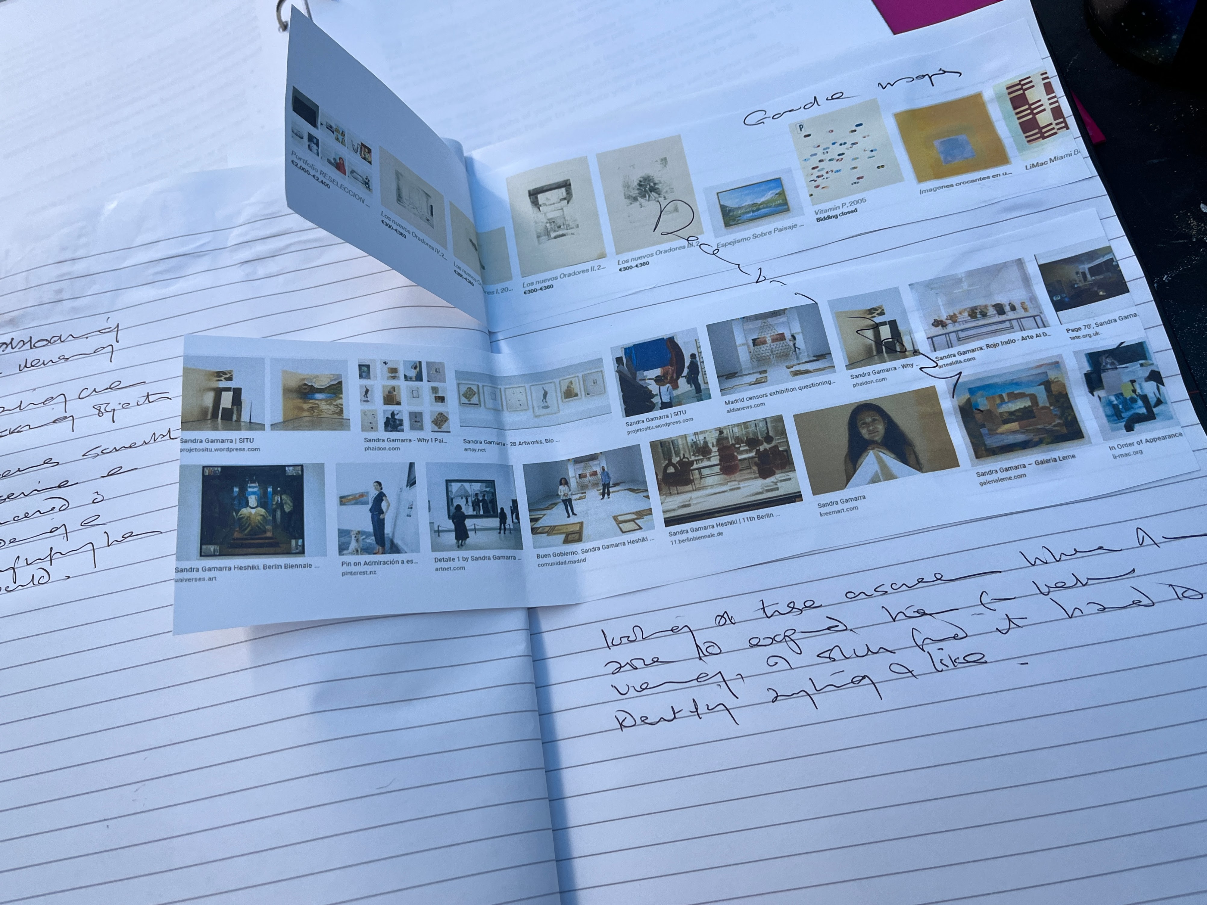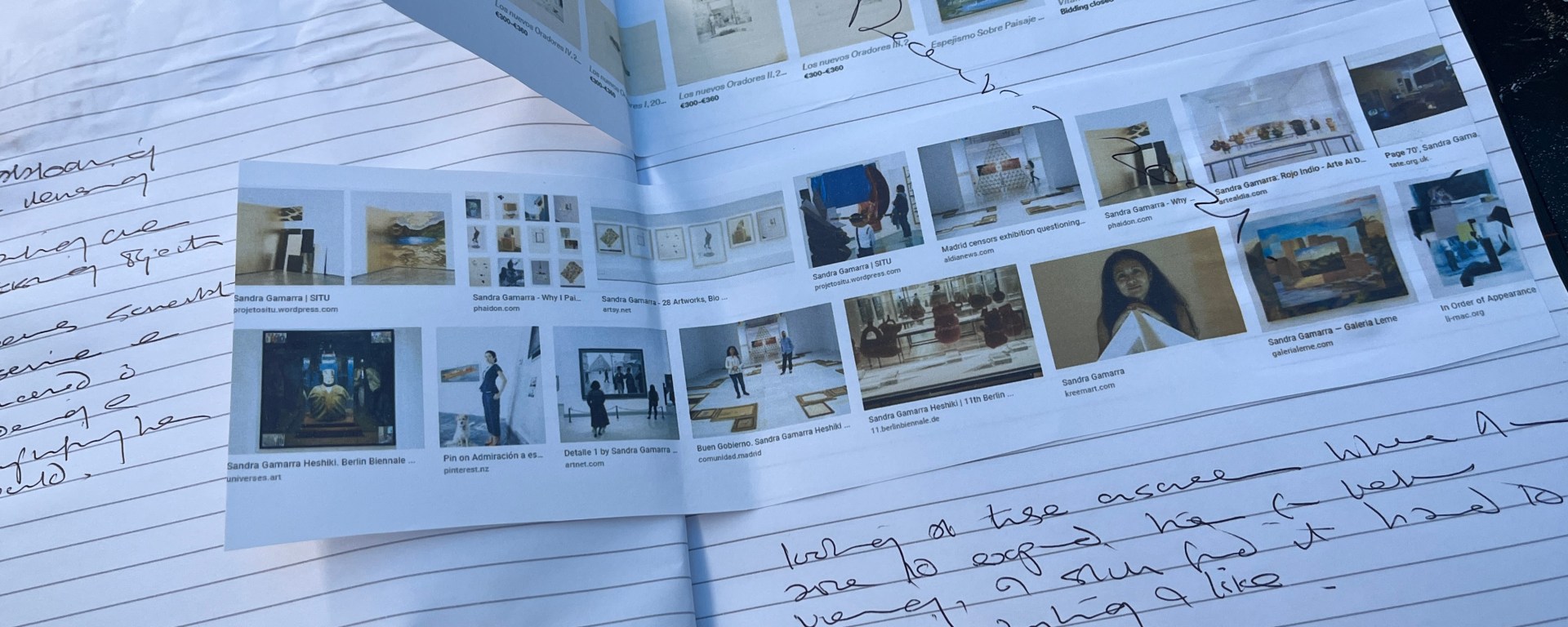 Sandra Gamarra (1972-) takes a more interventionist approach to her work by repetition and cataloguing of domestic and other items (see ArtNexus https://www.artnexus.com/en/magazines/article-magazine/5e73aabb601c902182ecd7c9/102/sandra-gamarra), or, as in the example shown in the course materials, layers pieces of the work of others to make something new. Again, there is no indication she credits the artists whose work she has incorporated and I wonder how I would feel if paragraphs of work I had published appeared in the text of someone’s novel or academic paper with no reference to their origin. Actually, there is no wondering about it – I would be furious and, with intellectual property law behind me, I would take legal action, so why is this not the case when artists appropriate?