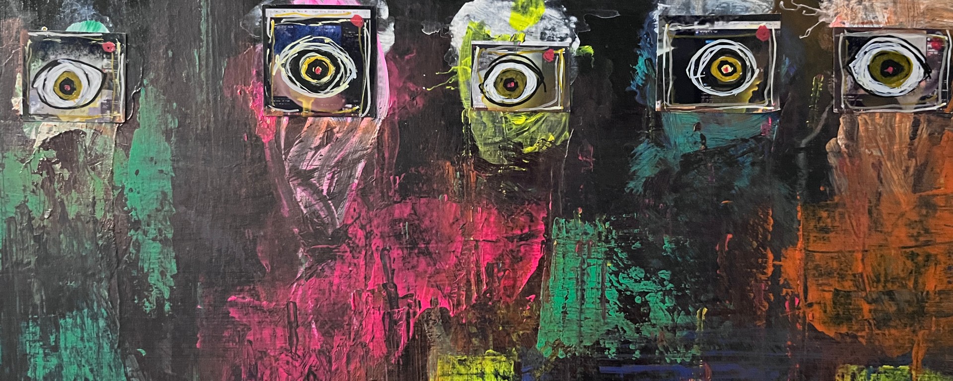There is some overlap between the digital and the physical, or maybe purposeful integrative glitching going on in Zhang’s work. She deliberately pixelates with paint and refers to the contrast of experience between viewing on-screen and in person. The is repetition and symmetry alongside disconcerting ‘faults’.
