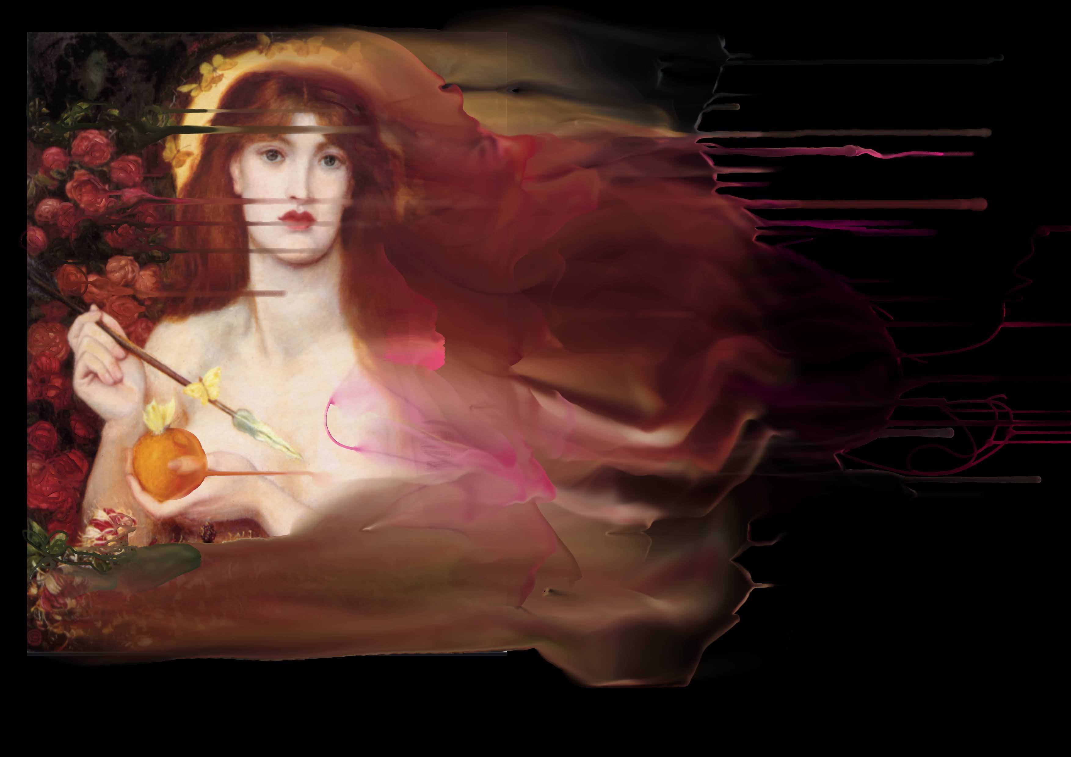 While I’m thinking about this, I’ve been investigating mirror tools in my digital software. Rebelle seems not to have one although I’d thought it had, but I was able to use it to transform a painting titled Venus Verticordia by Rossetti in 1868.