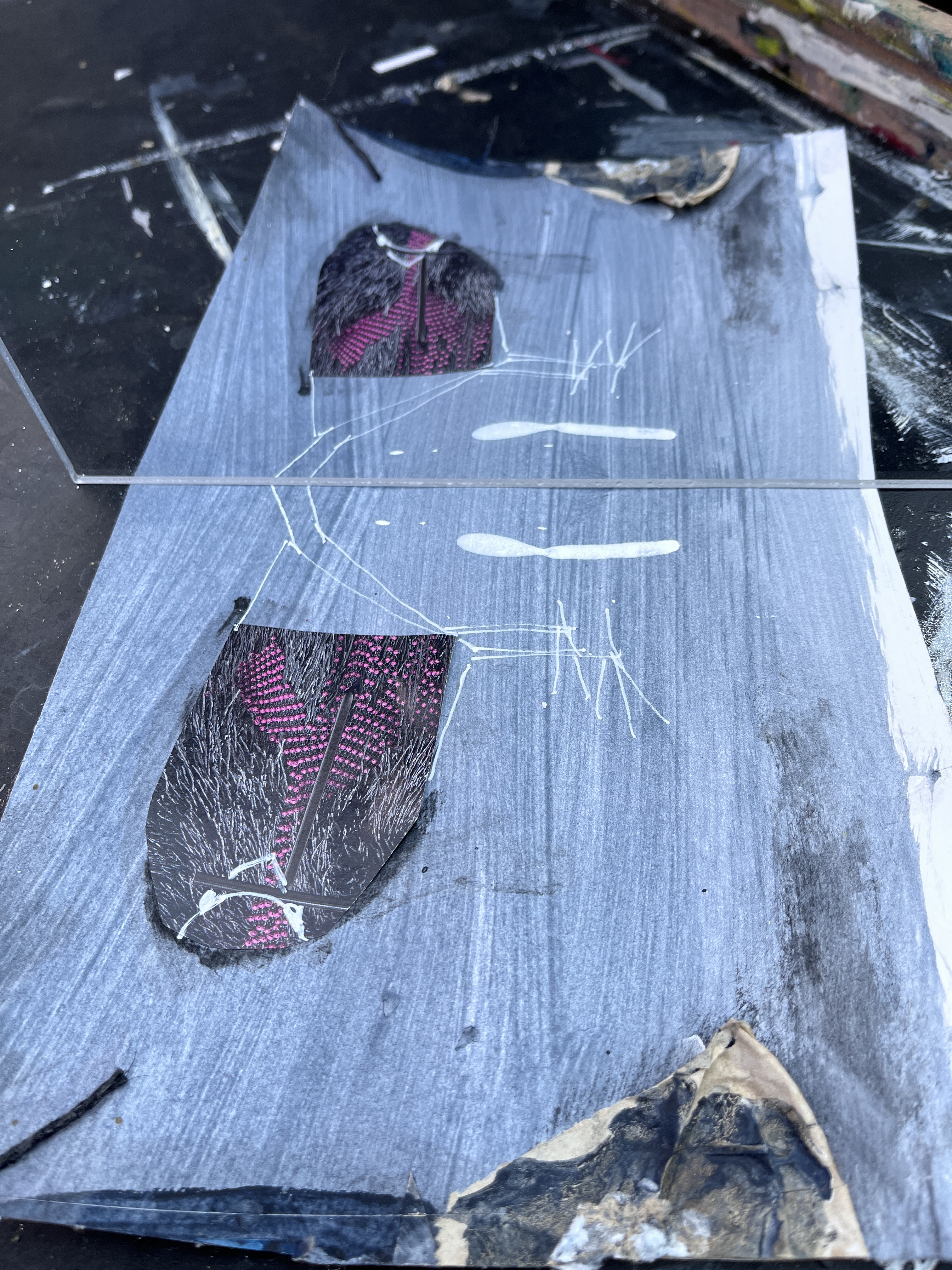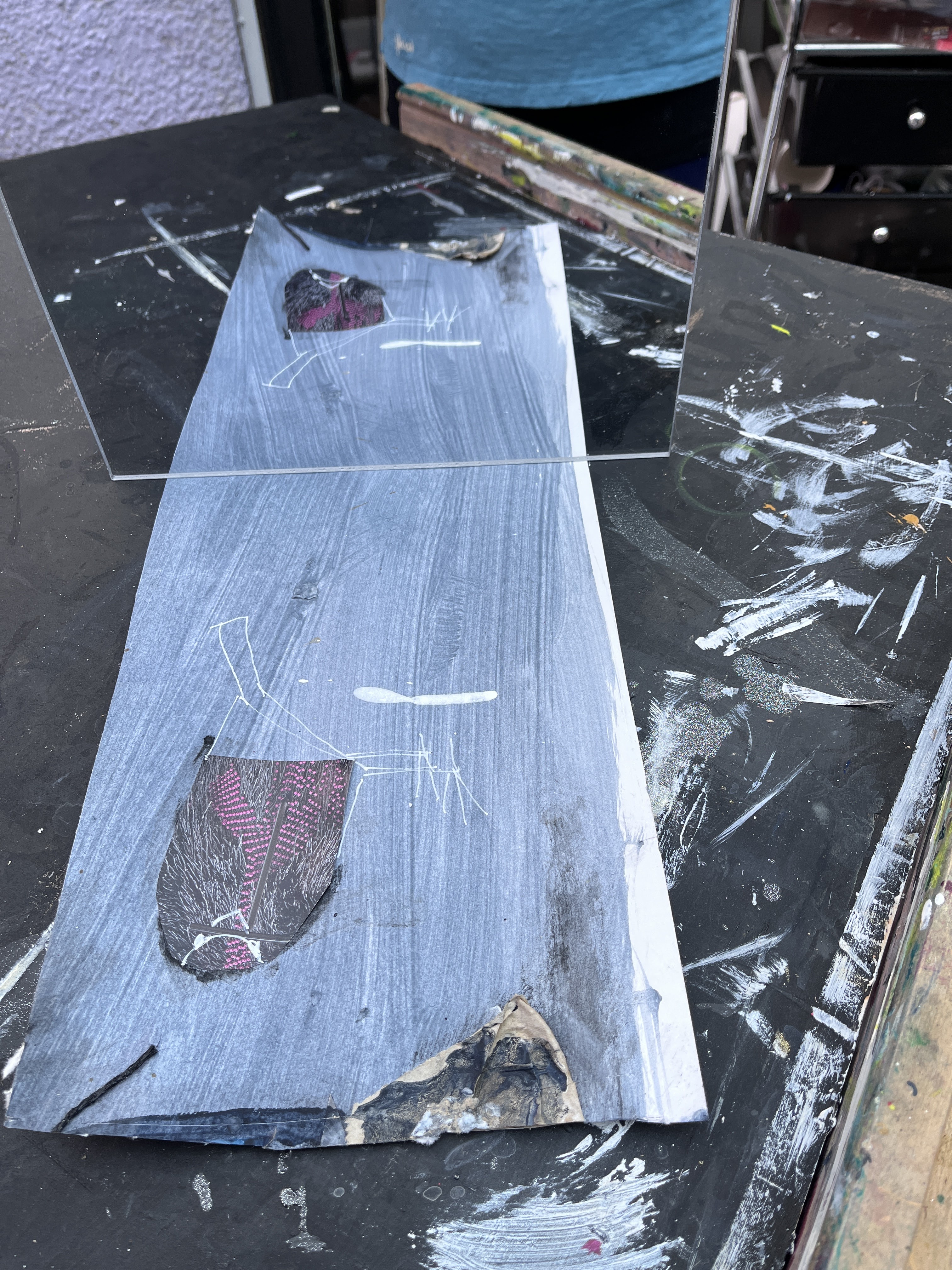To make the mirror image, I had to remove the plastic cover but that will go back when I’m done. I gave the gloss photos a layer of matte medium though, to take the edge off the shine.