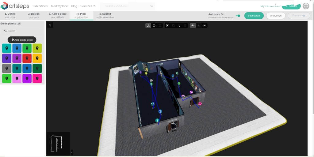 I found Artsteps recently and spent a mad day and a half trying to position pieces of art so they didn’t stick out of the roof or park in the middle of the room. I lost one piece for an hour then found it outside.