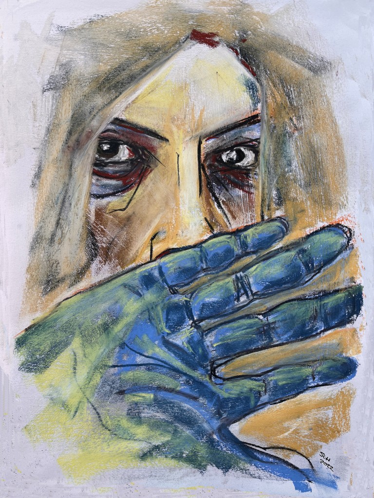 A3 pastel paintings made as part of a series about the effects of repeated concussions (CTE – chronic traumatic encephalopathy) on brain function. Recognised in sports such as rugby and football where concussion time-out is now mandatory, reluctantly in boxing, and barely at all in women victims of domestic violence who have no time-out and no referees to intervene.
