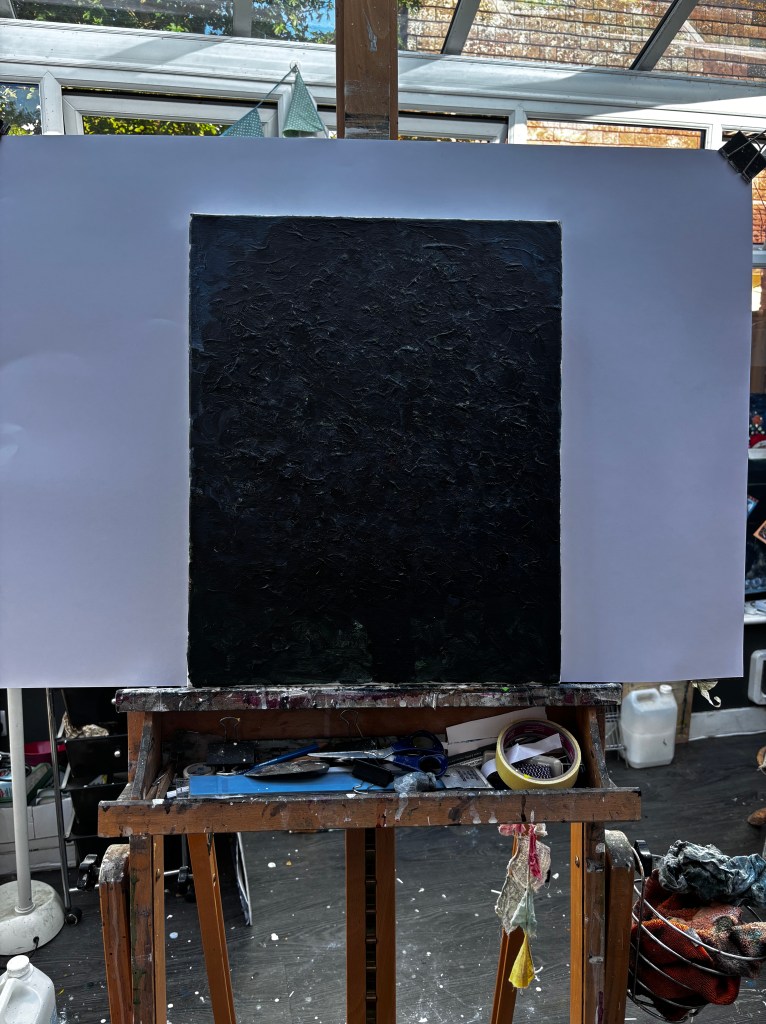 20th June and it’s been scorching in the studio. Even now, at 5pm with the doors and windows open, it’s 32C which, as a genetic Northerner, is tantamount to desert conditions. Paint will dry on the brush between palette and canvas.