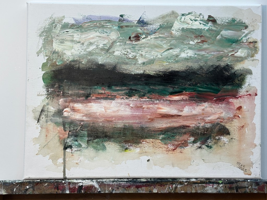 The first first was impulse-buying a set of water-soluble oil paints, the second was watching past seasons of Landscape Artist of the Year (2017 and 2018) again, this time, looking at process and techniques. It had occurred to me that I’ve never seen anyone actually making work, never seen a piece of work from beginning to end, and never heard live, constructive critiquing, albeit conversational, by people who seem to know a thing or two.
