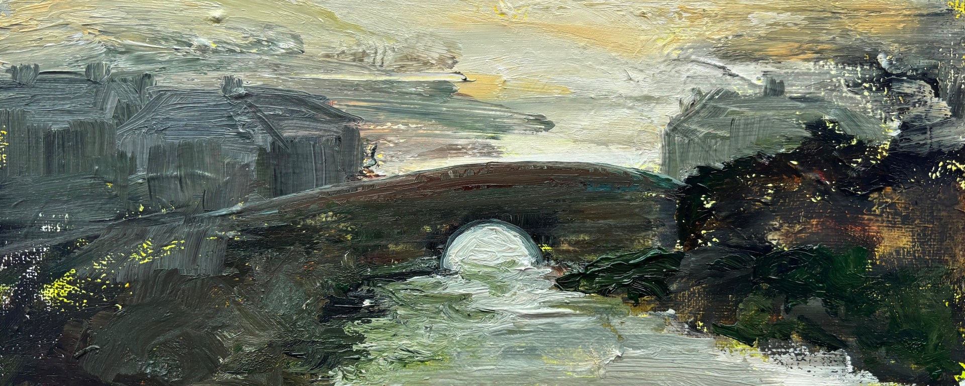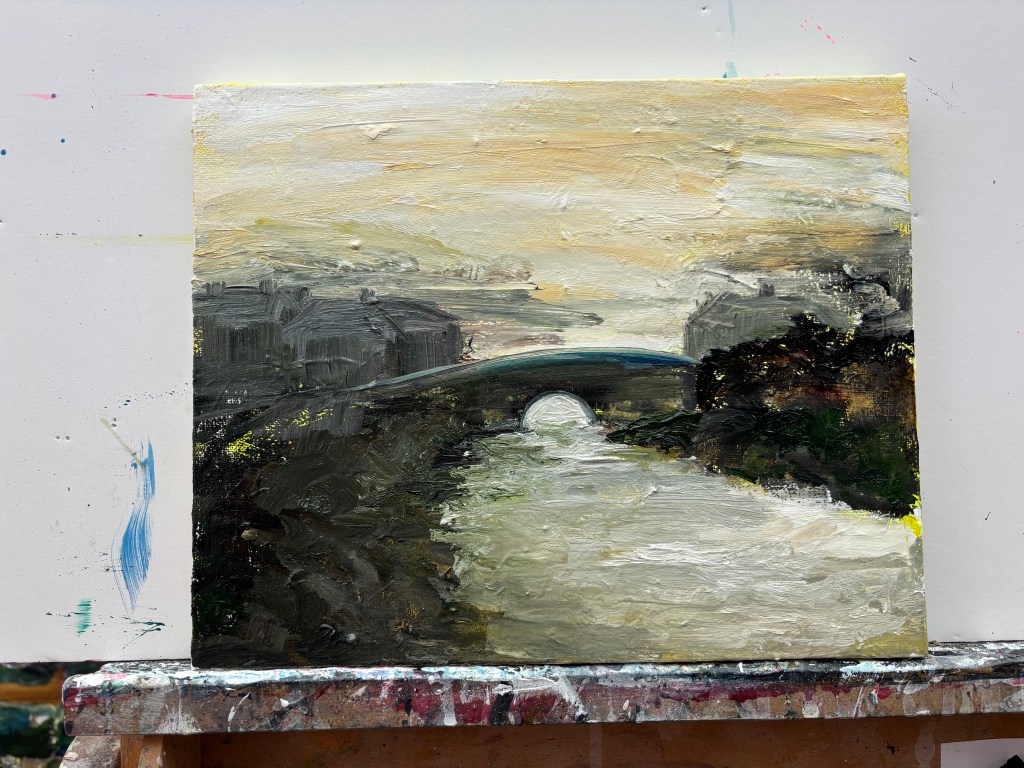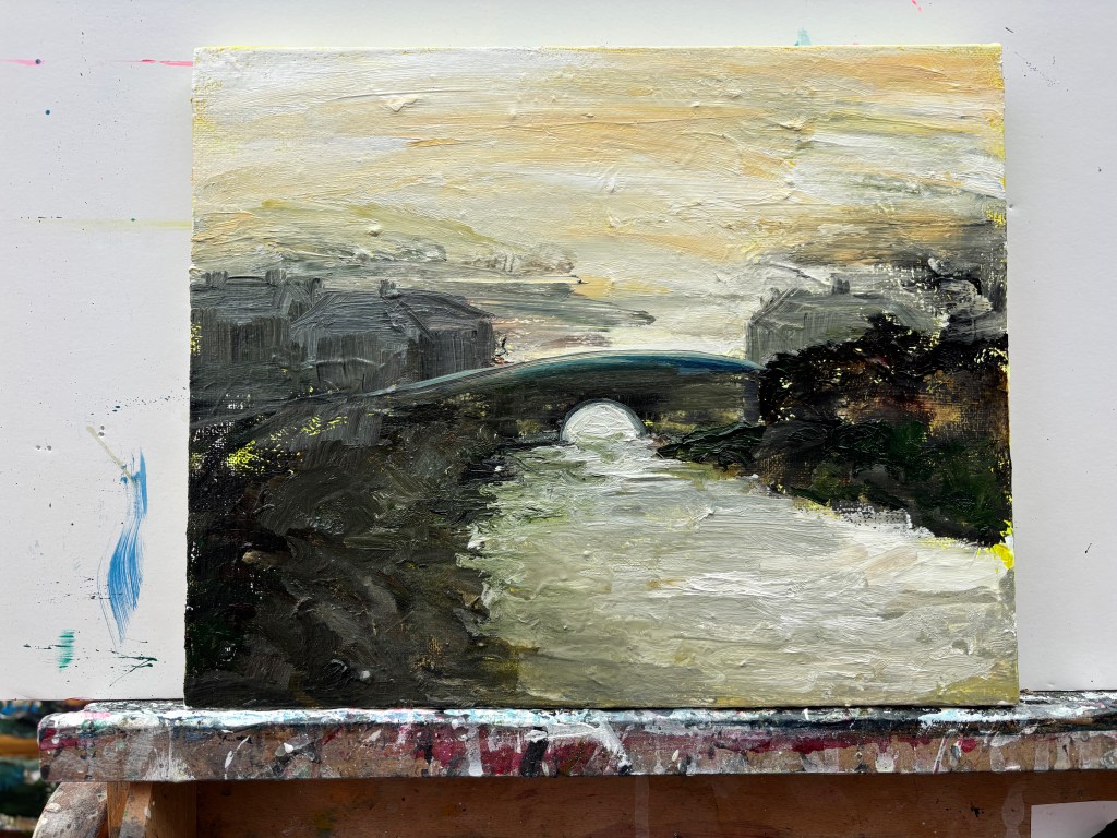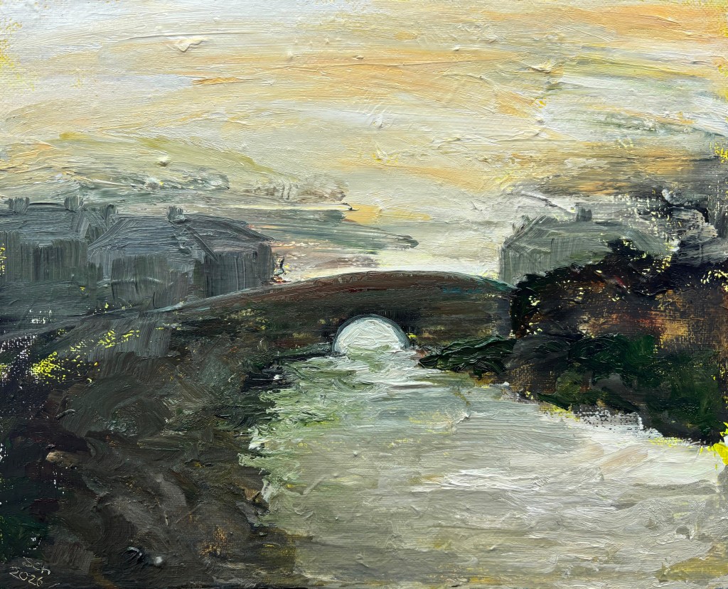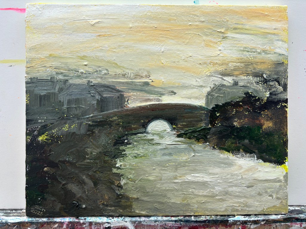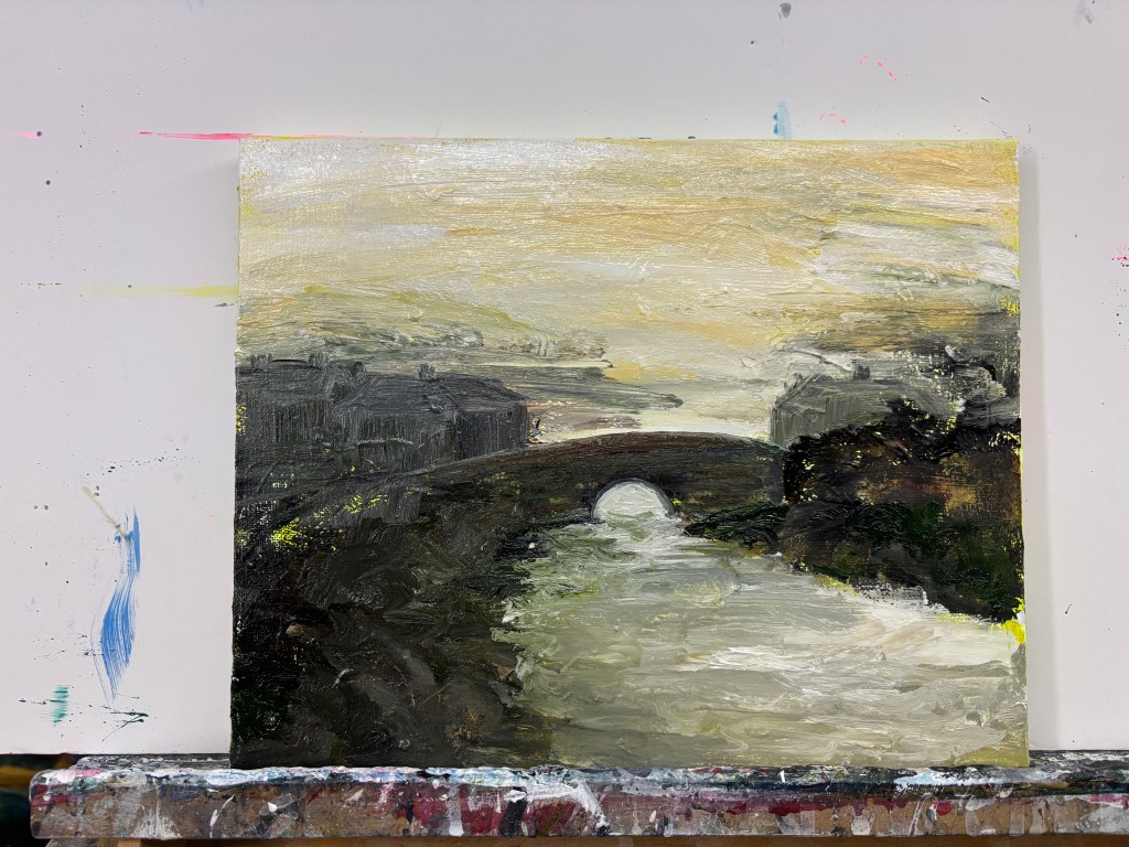Bridge at Beeding, 2026. Water-soluble oils on 30x24cm canvas