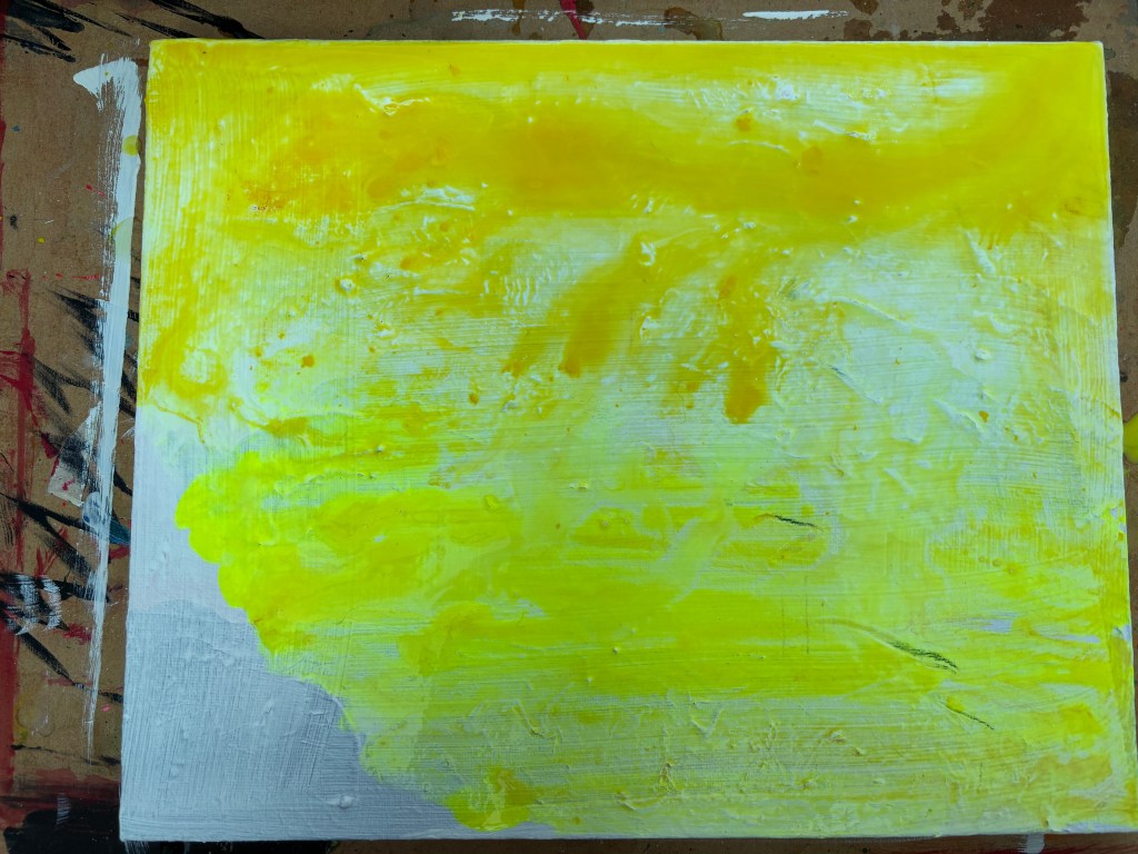 This is bright yellow acrylic neon splashed over an acrylic primer and allowed to drift.