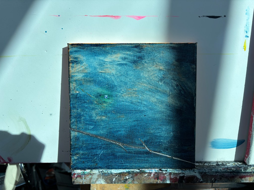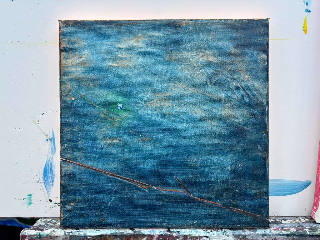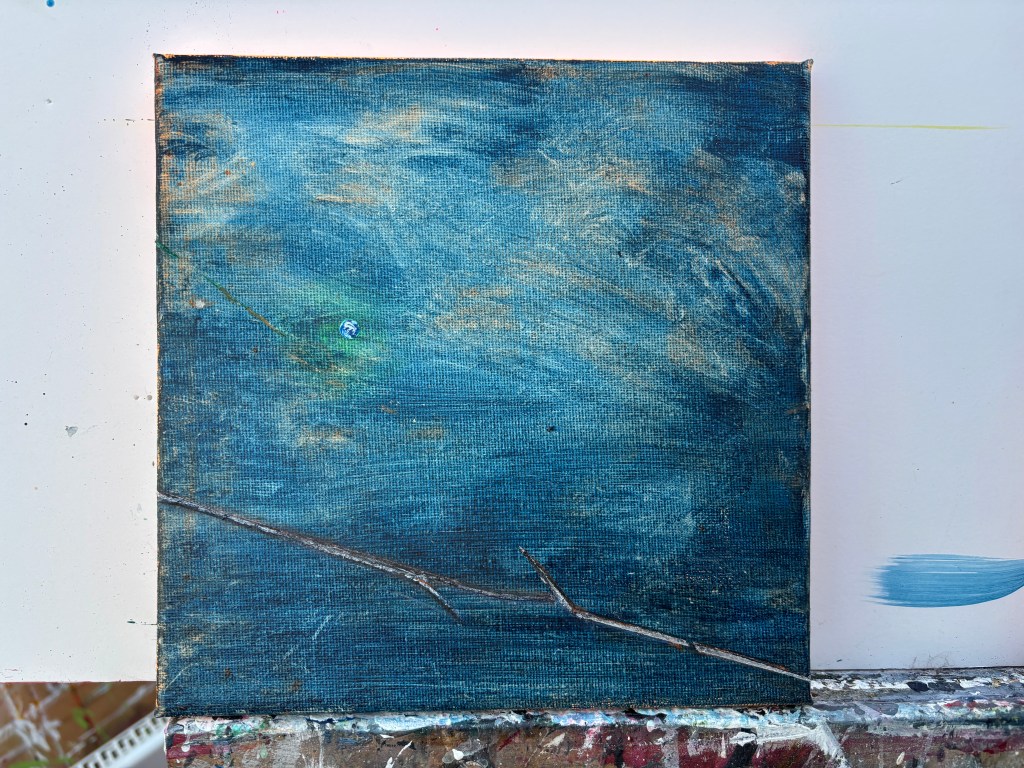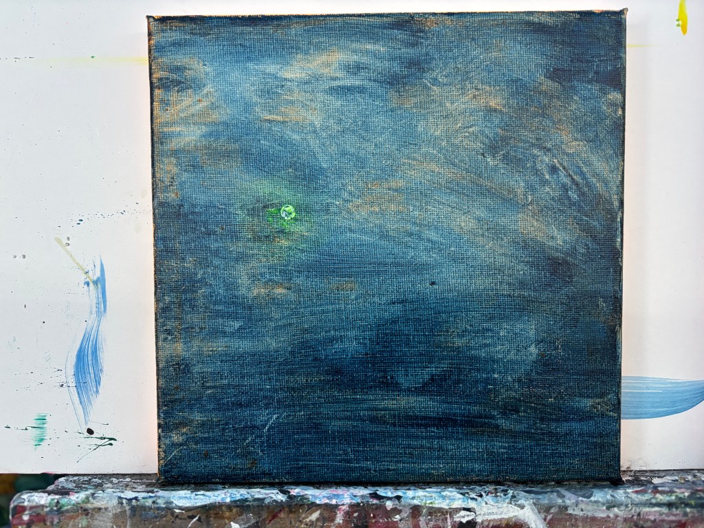 There’s a small pale dot on the left of the painting that seems to be in Moon position, which I suspect is a splash of water. I tried to remove it, then to resintate it, but neither worked very well. Maybe another drip is the answer.