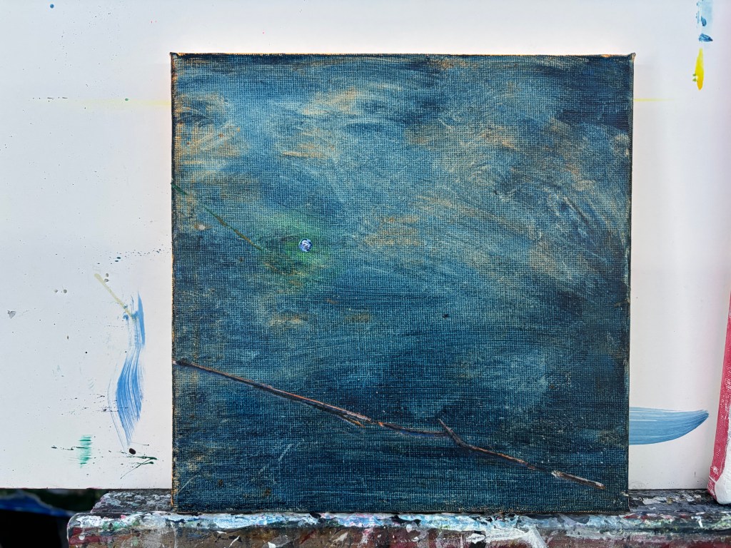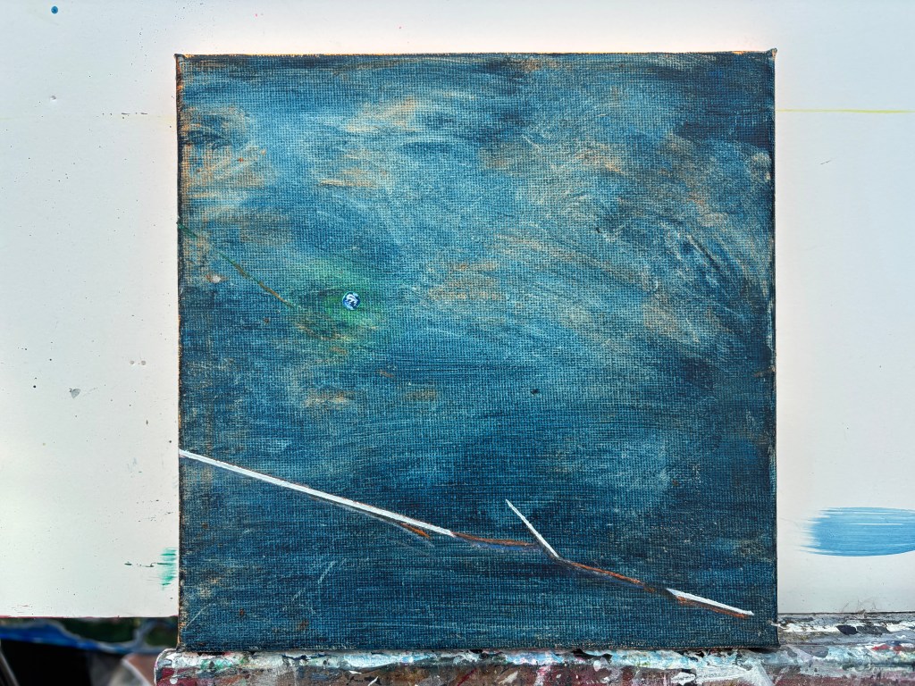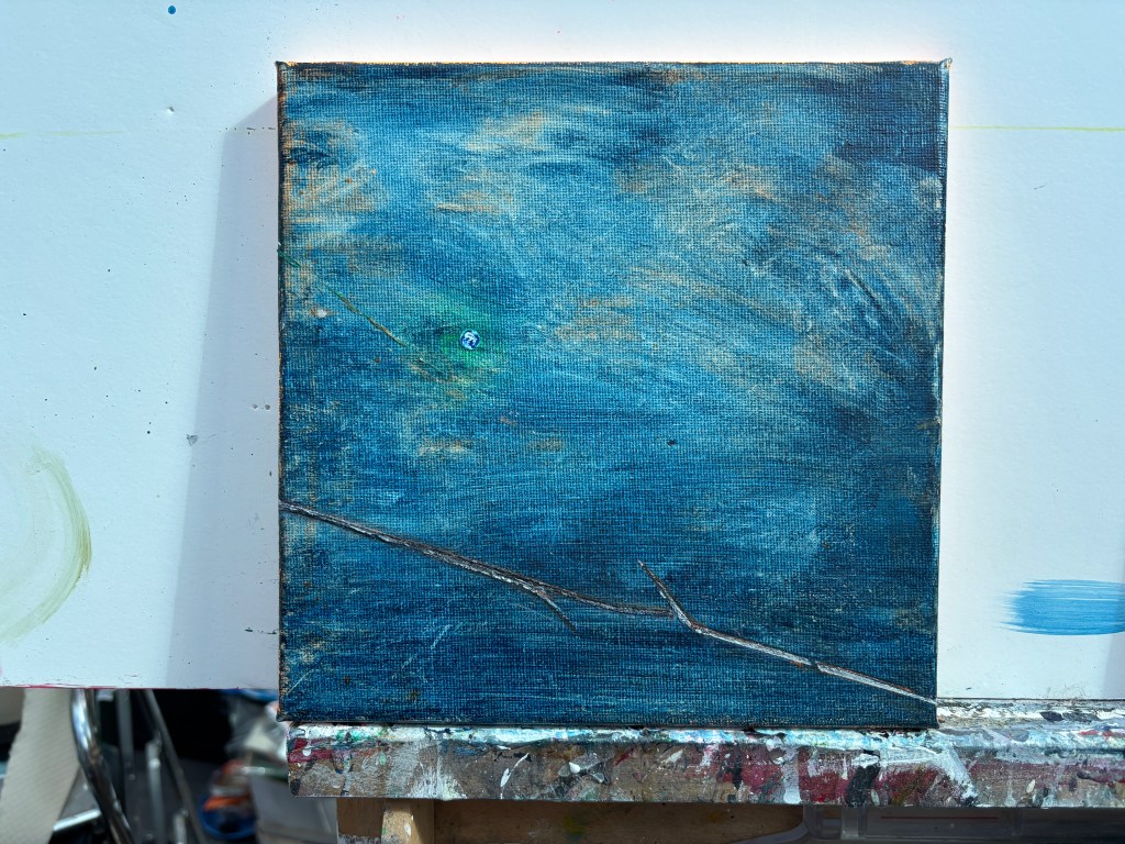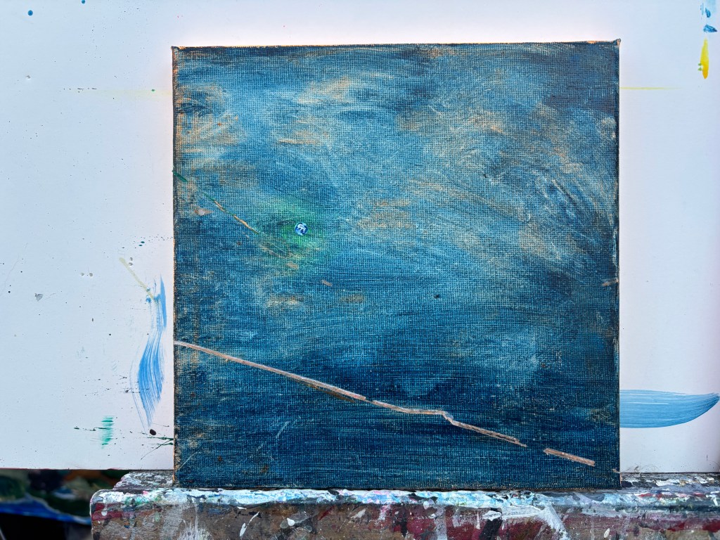 There’s a small pale dot on the left of the painting that seems to be in Moon position, which I suspect is a splash of water. I tried to remove it, then to resintate it, but neither worked very well. Maybe another drip is the answer.