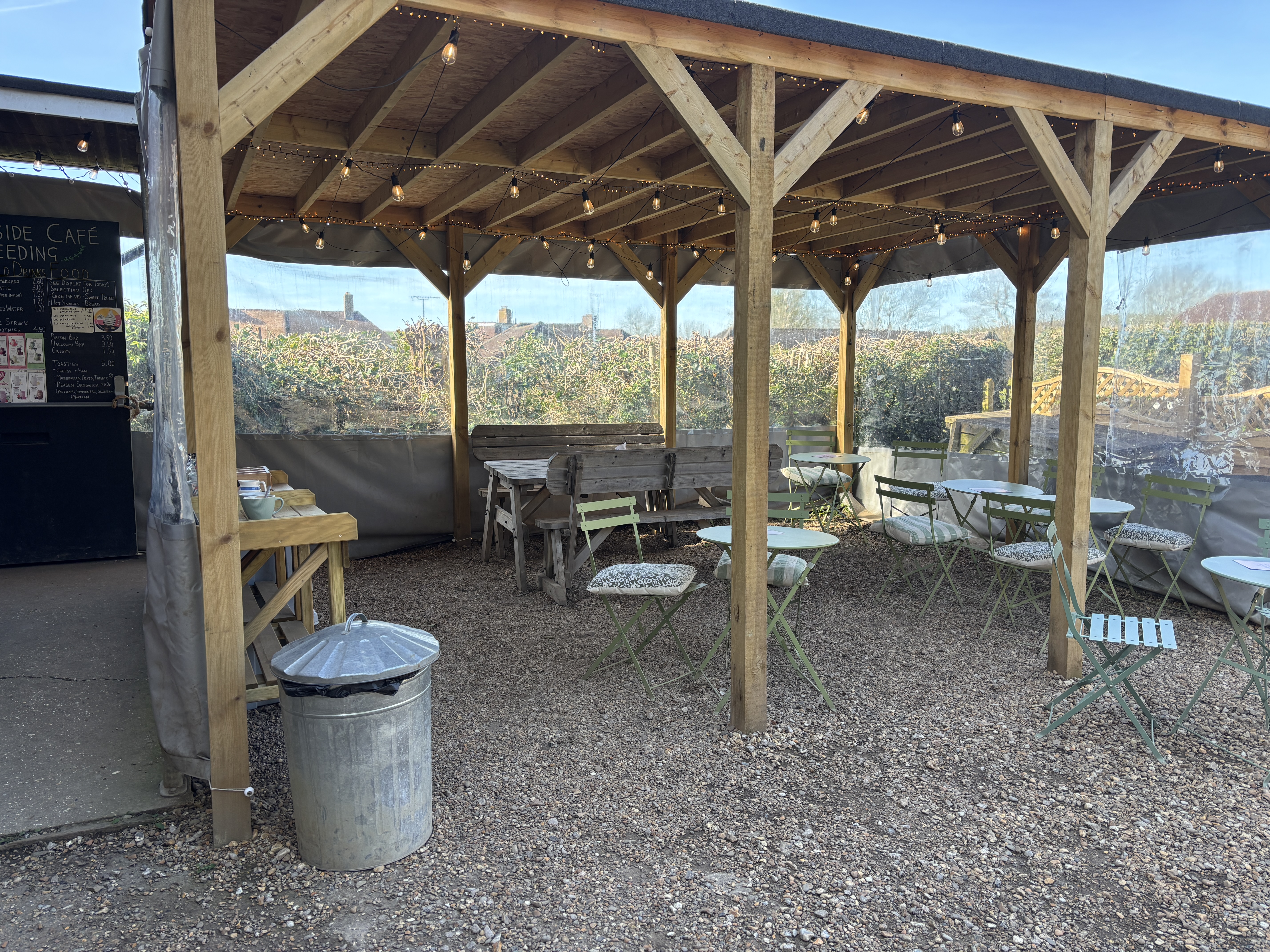 17th April 2026. This is planned for early June. The venue is an outdoor but covered cafe that sits on the end of the community hut (Bevan Hall) belonging to the church just opposite. The covers come off in the summer. At this point, I’ve made an informal approach to Reuben, the owner of the cafe, received a very enthusiastic response, gained permission from the vicar (via Reuben who did this almost overnight and before I’d even asked, for which a massive thank you), and now we’re into the nitty-gritty of dates. What3Words: hedge.into.loudness