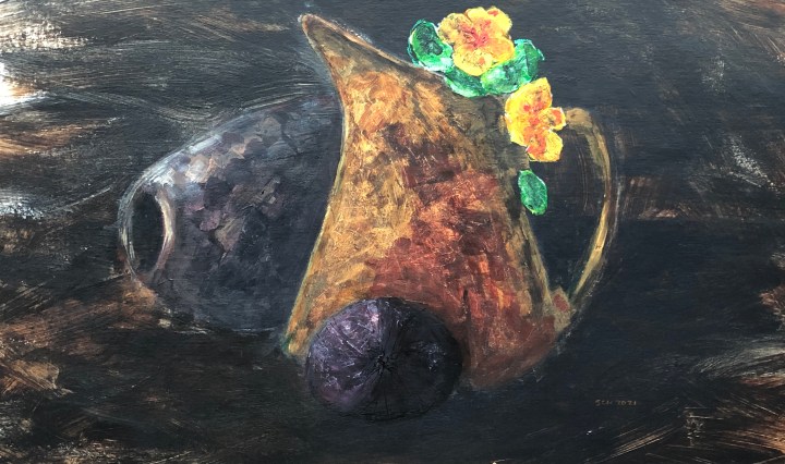 A small piece arising from an exercise in the Studio Practice module of my OCA painting degree. This is gold and silver acrylic on black cartridge primed with gloss varnish. The thin dark marks are scratched texture made with a … Continue reading Haiku to Klimt