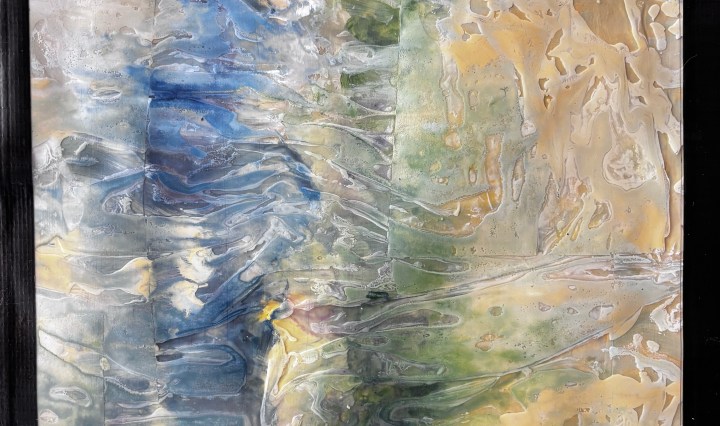 28th July 2025 For an account of the physical, see The By-Any-Other-Name Virus Story. This is a layer cake of white acrylic paint, strips and pieces of tracing paper, yellow, red and blue dilute paint, more tracing paper pieces, water, … Continue reading From digital to physical